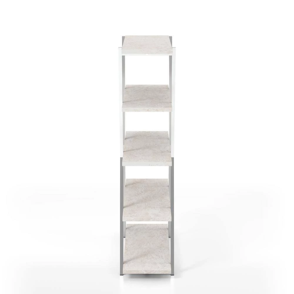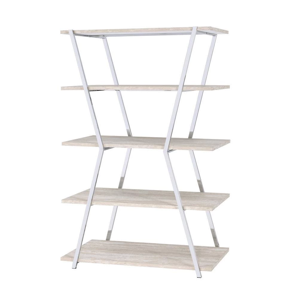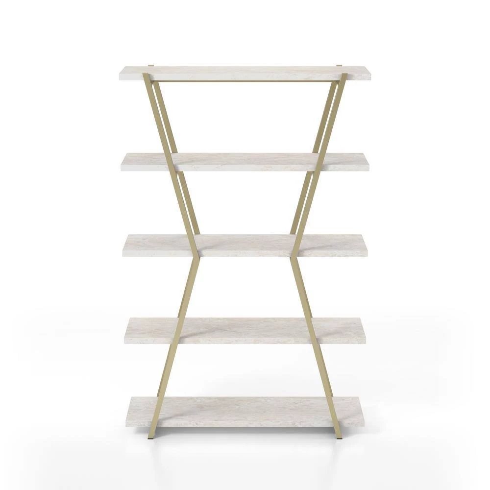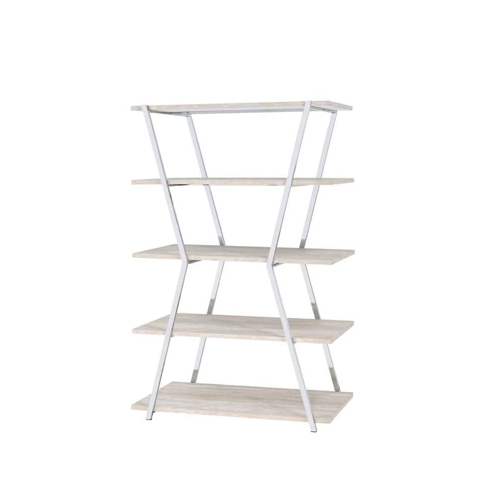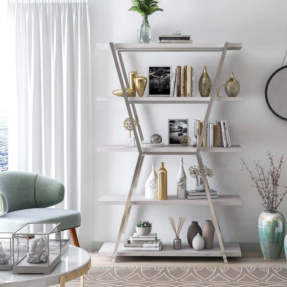 Display your chic style with the Dayer 5 layered display bookcase. Wide spacious shelves complements the polished metallic frame. Display books, trinkets, or awards on this art deco bookcase in your home office or living room.