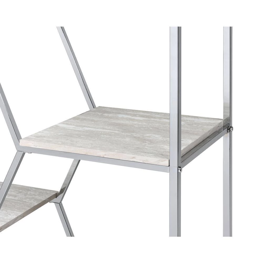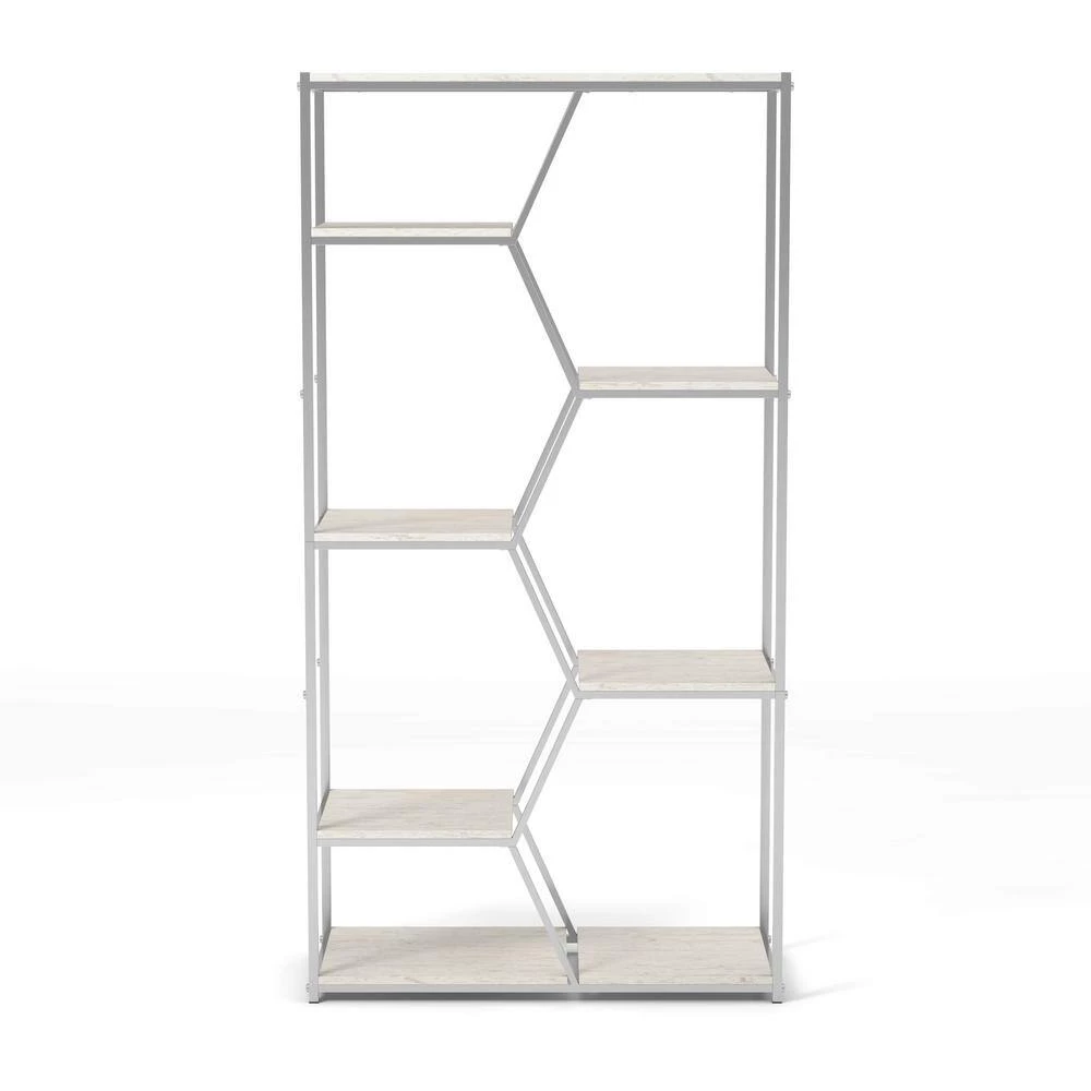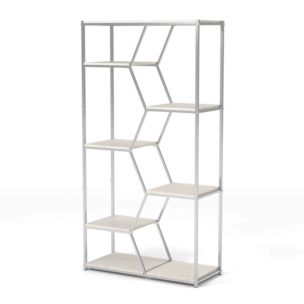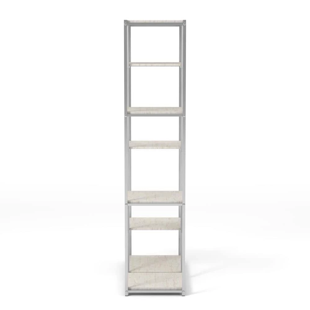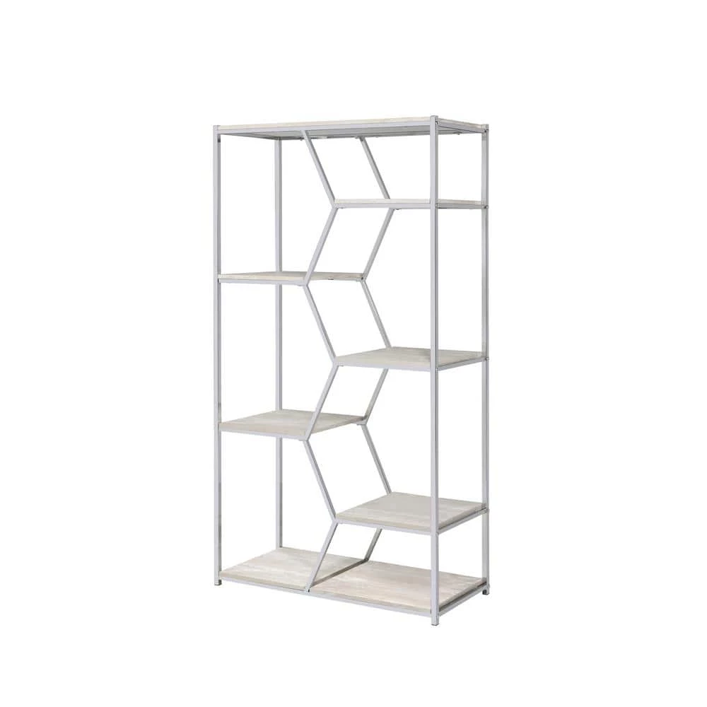 The Furniture of America Bookshelf is ideal for any space. The juxtaposition of the shelves is what makes the piece stand out from similar styles. The glam multi-shelf unit has a sleek Chrome or Champagne finish frame with complementary white tone shelves spacious enough to house all your favorite decor. Choose from books, sculptures and photos. Upgrade the storage in your space with this gorgeous bookcase.