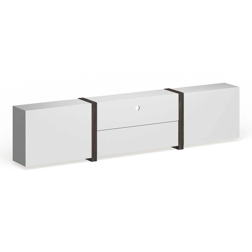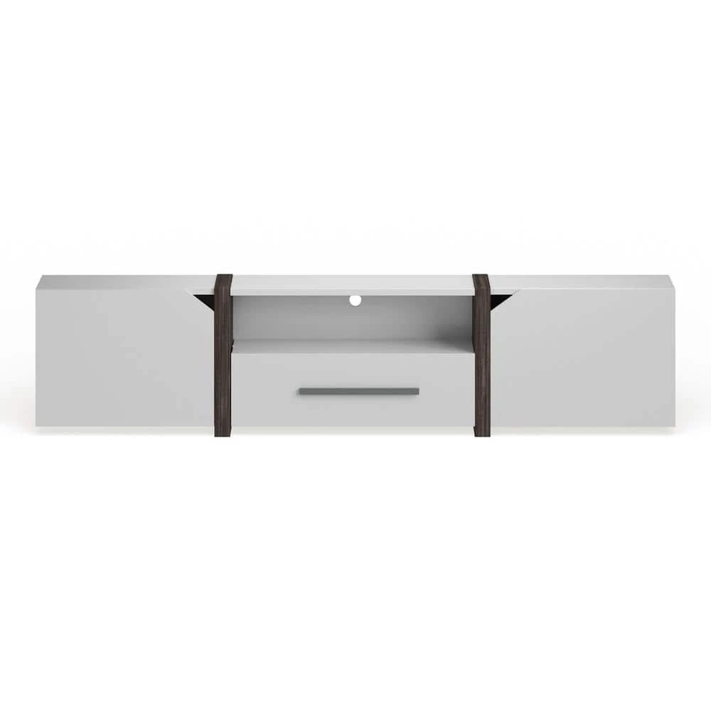 Host the next movie marathon or game day with the help of the Contemporary 81 in. TV Stand. A modern motif with industrial attitude, this piece stands out and impresses. The numerous storage options are great for storing movies, consoles, and more so media can stay neatly organized and easily accessible. The sleek frame boasts clean linear lines and a modern 2-tone finish that is undeniably chic.