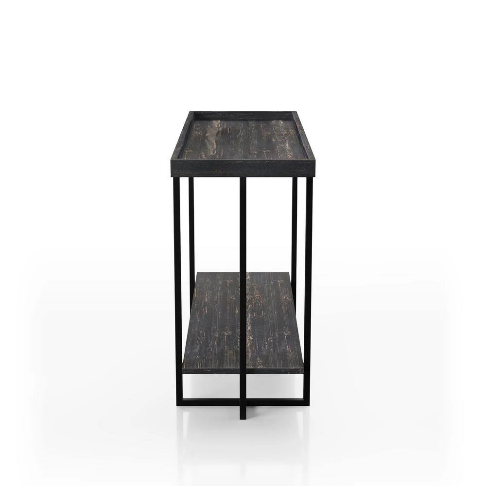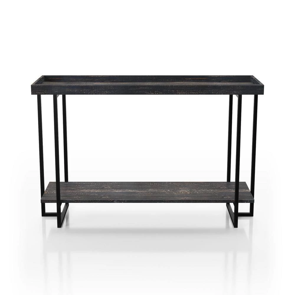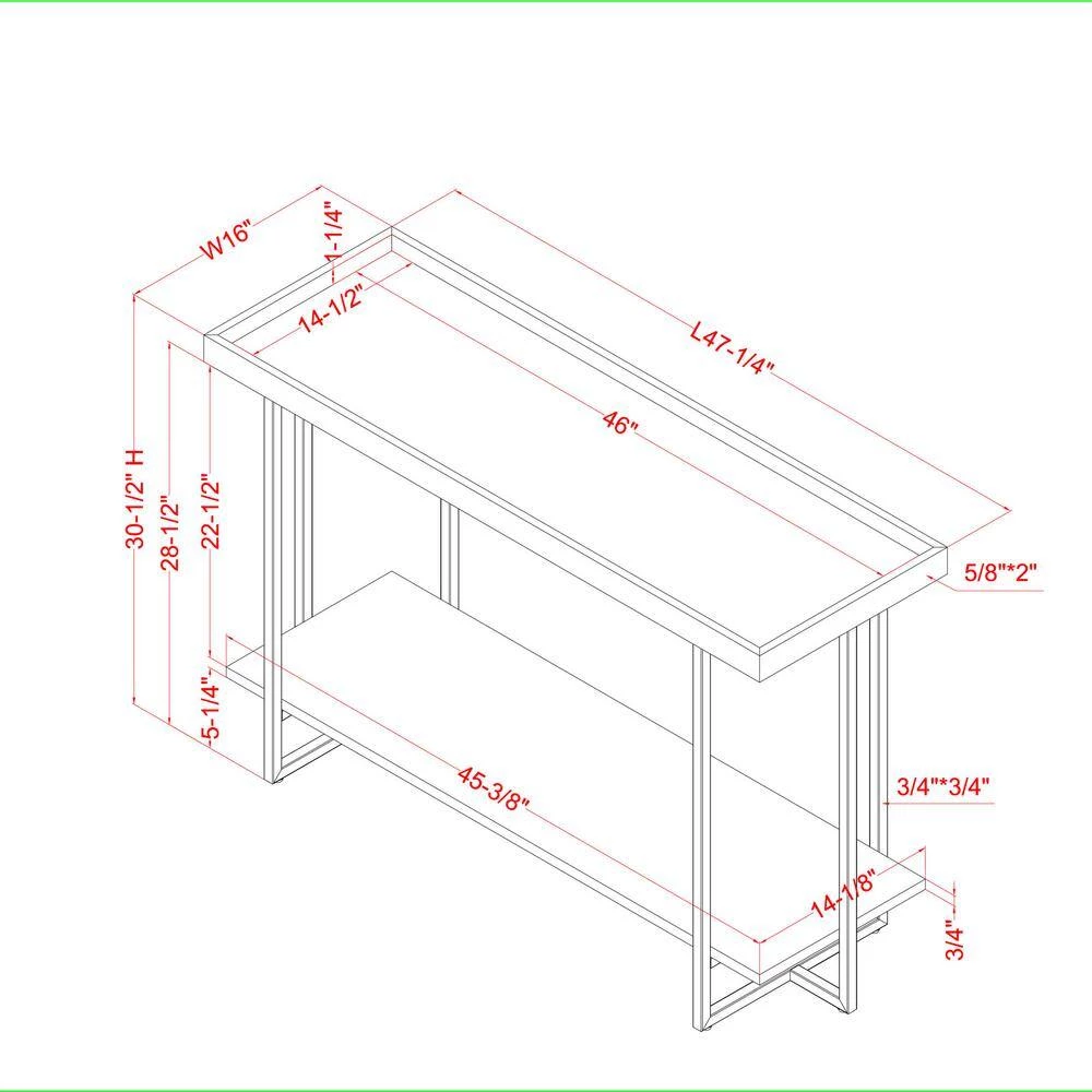 Instantly optimize your storage and display room with this excellent sofa table. This item offers plenty of ample space on the top and on its bottom shelf that will hold anything you desire to show off. Great creation of metal, MDF, and pine veneer combination that’s affordable and still keeping stylish all at the same time. Complement your sofa with this console table to complete the living space you’ve always wanted.