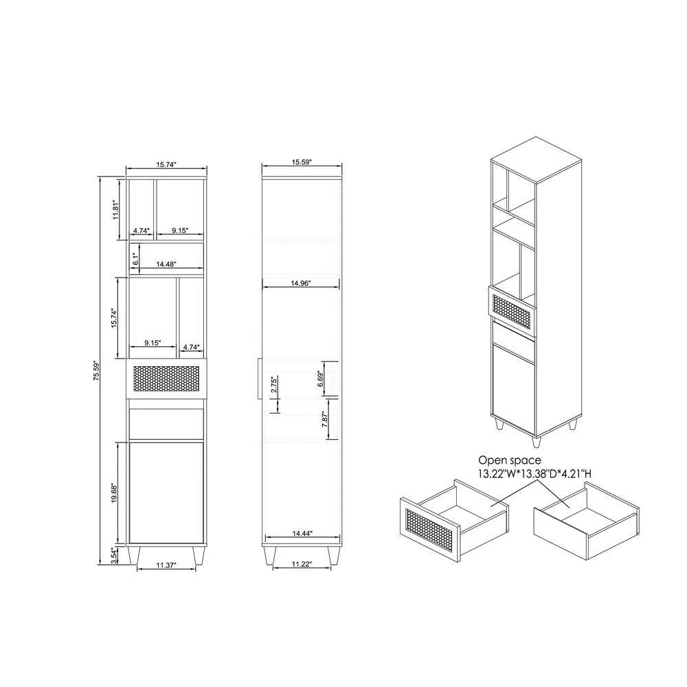 - 75.59 in. H x 16.33 in. W x 15.74 in. D