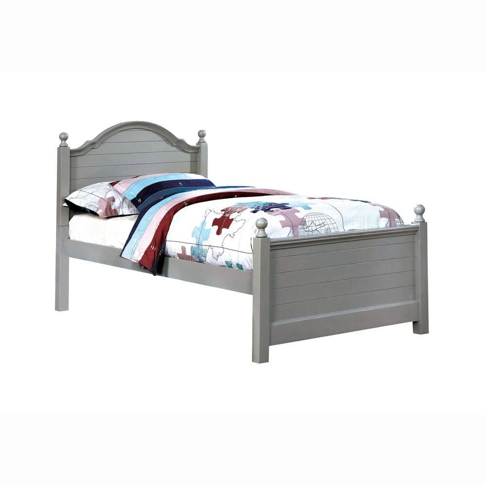 This Twin Bed by Furniture of America features a beautiful 4-post design and slatted construction. It features lovely solid wood construction in a cool gray finish. Also, the camelback headboard creates a gorgeous focal point for your room as the corner posts accentuate its elegant design.