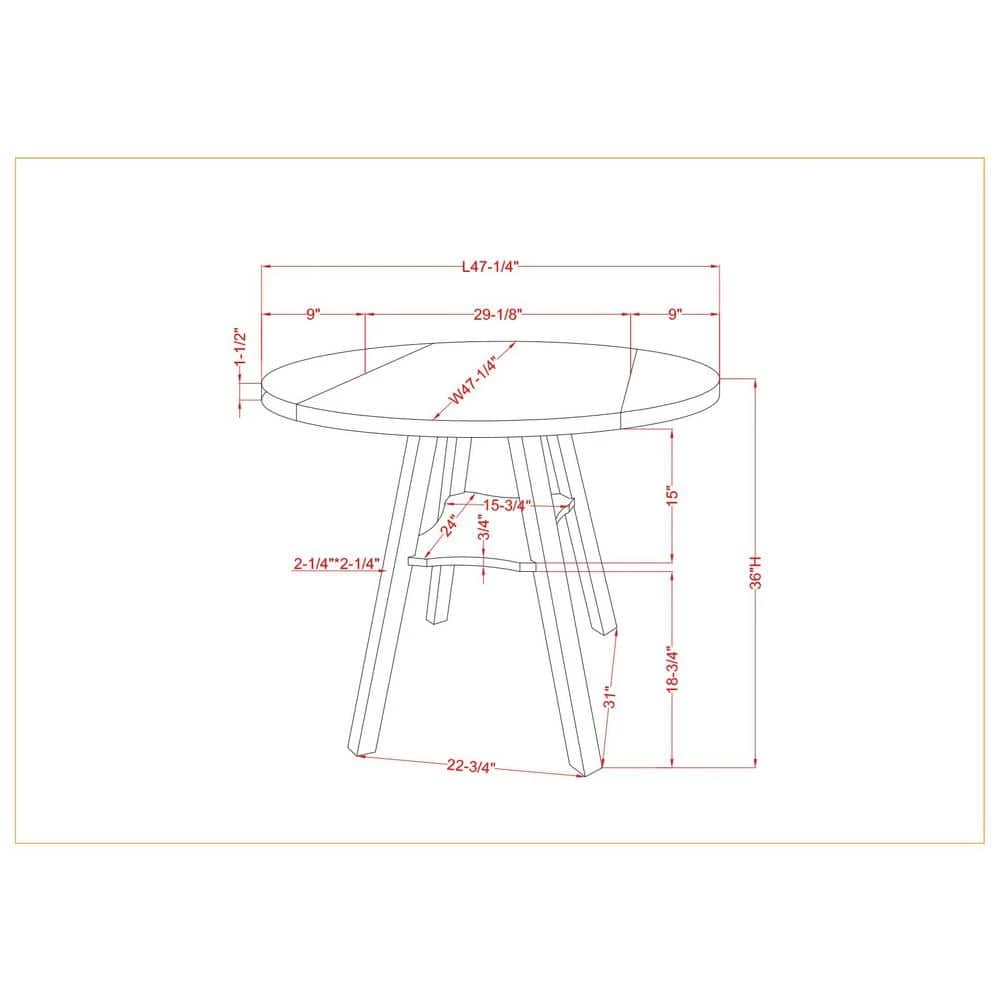 - 36 in. H x 47.25 in. W x 47.25 in.D