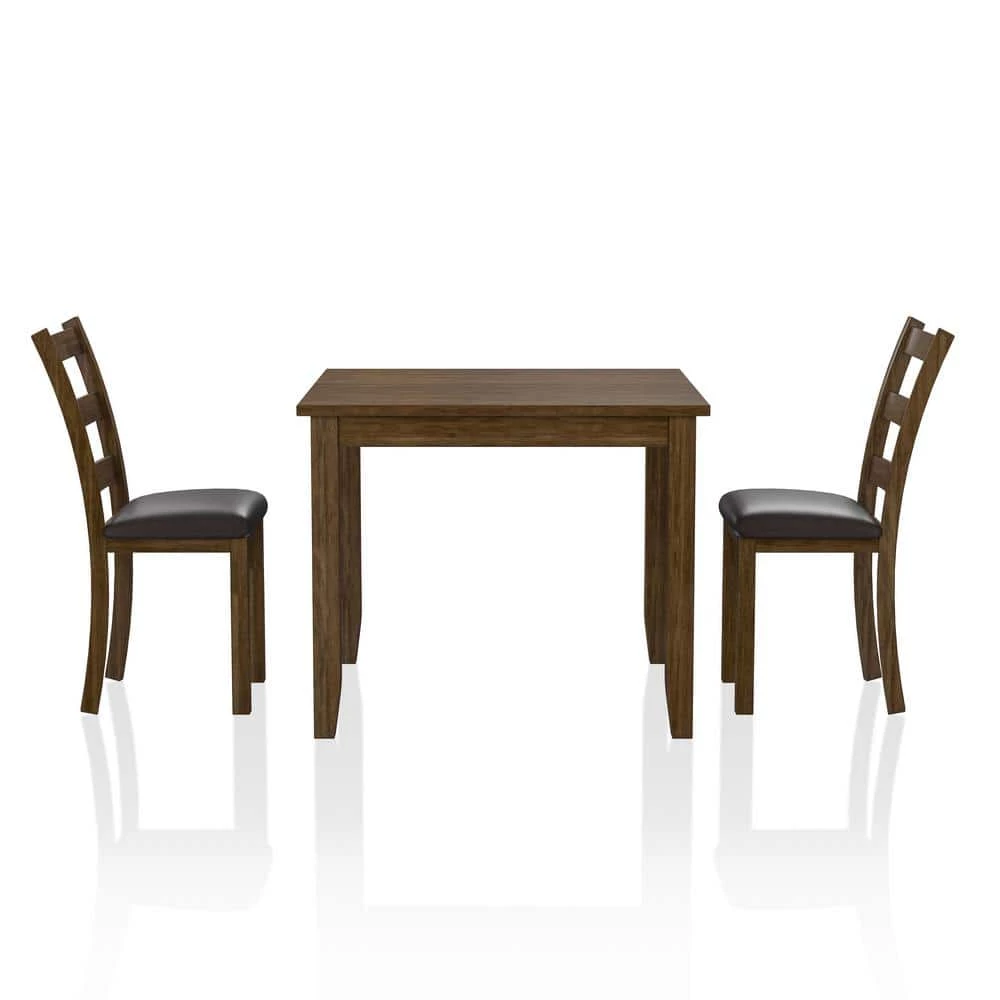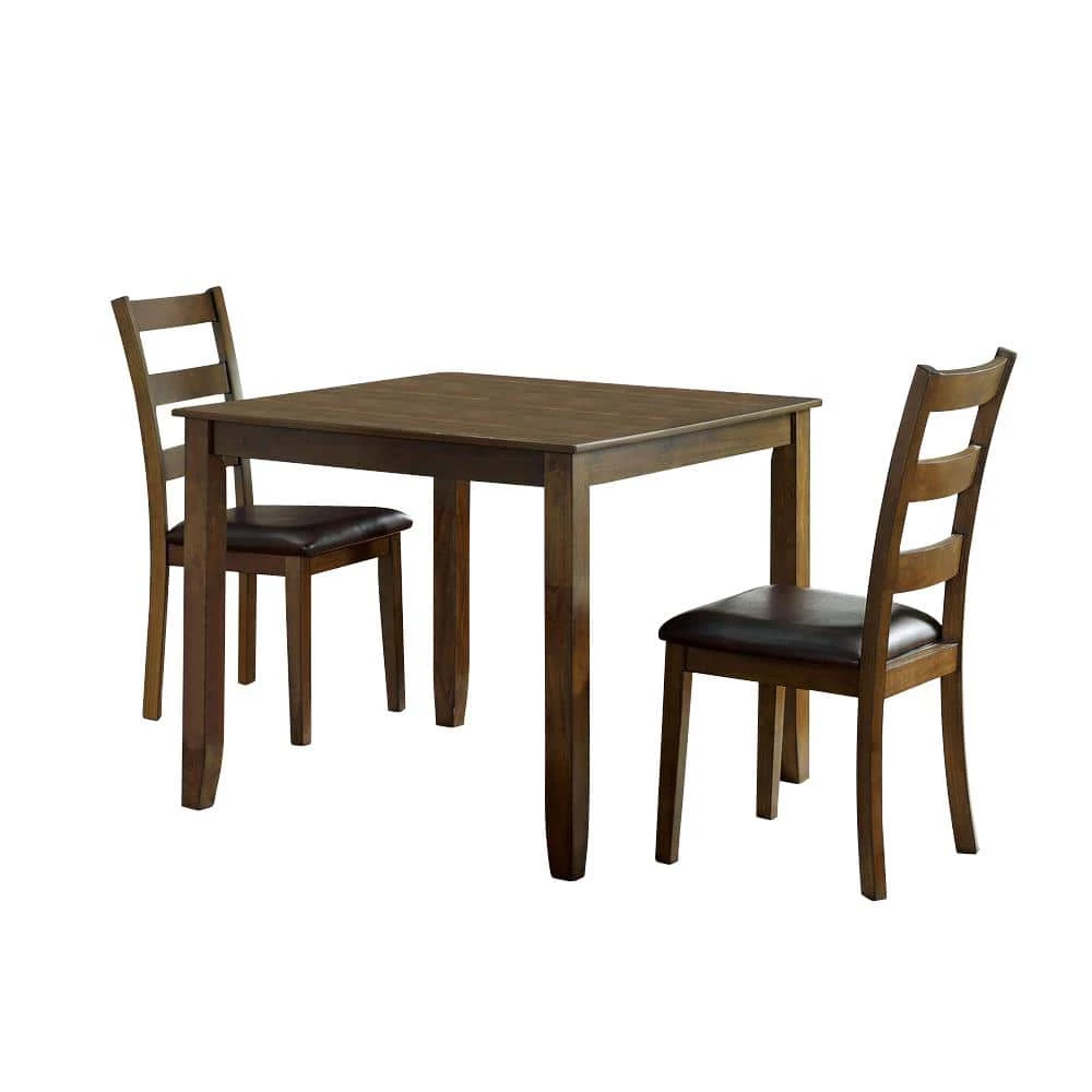 The perfect dining table set for 2-is beautifully crafted in a walnut finish, bringing out the best of transitional design for nearly any dining space. The dining table set comes complete with 2-matching chairs, upholstered in a dark brown leatherette material that contrasts with the table. Enjoy an intimate meal for 2 and the attractive new upgrade for your dining space.