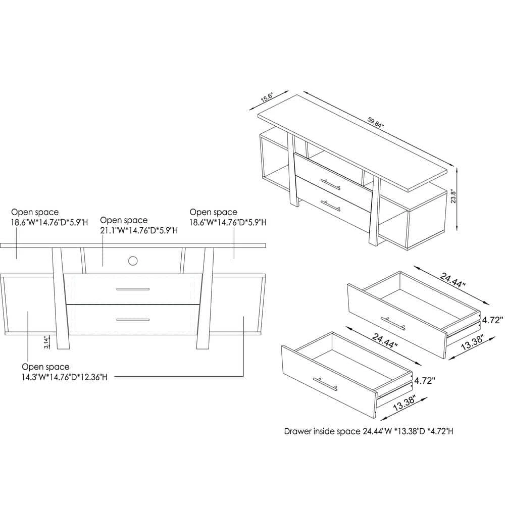 - 23.8 in. H x 59.84 in. W x 15.6 in. D