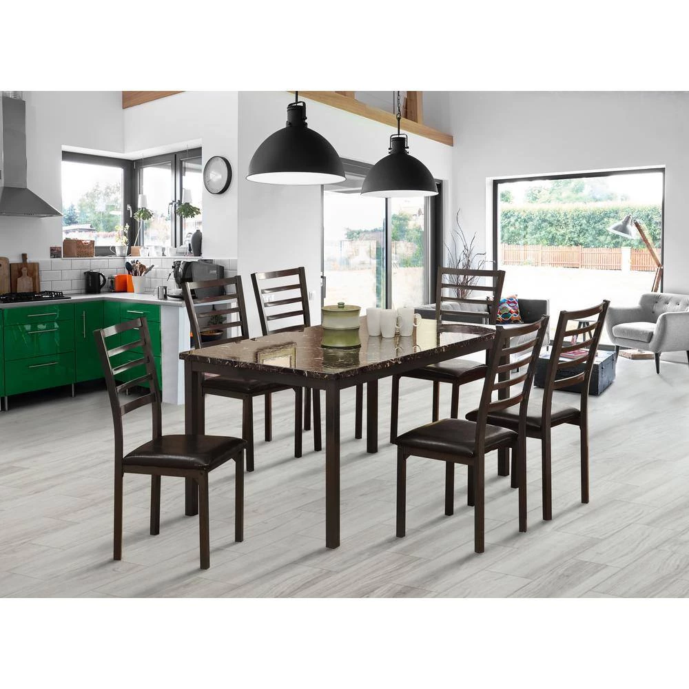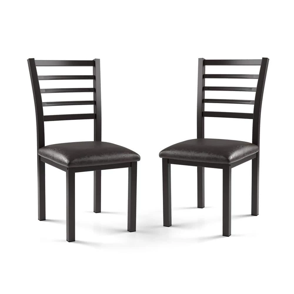 The Ladder Back Padded Faux leather Side Chair in Black brings a simple modern vibe to your dining experience. Upholstered in black Faux leather, this tall chair’s arched ladder back is designed to provide plenty of comfort. Delivering streamlined contemporary style, this set of chairs is a charming addition to modern casual dining. The Ladder Back Padded Faux leather Side Chair in Black comes complete in a set of 2.