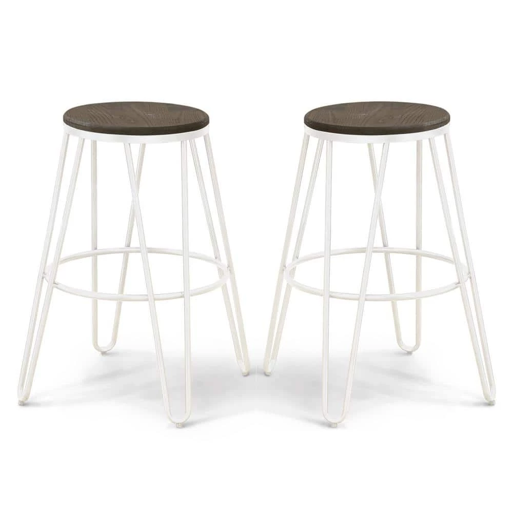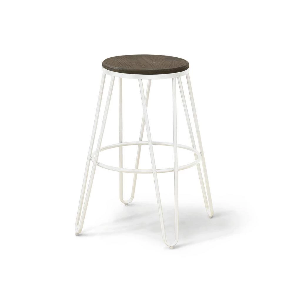 Elevate your Farmhouse dining room or kitchen with this Metal Bar Stool in white. Gorgeous natural elm seats are beautifully accentuated by rounded supports. Rest comfortable on the smooth wooden seats as the sturdy steel leg rest provides additional suppor. Refresh your kitchen and highlight your Farmhouse style with this Bar Stool.
