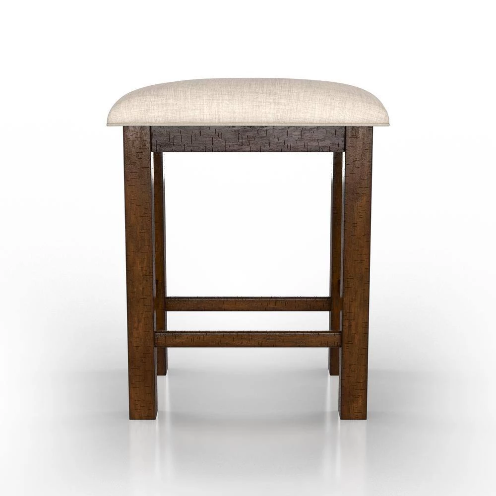 Whether your dining space is country farmhouse or rustic, this set of two counter height stools is bound to blend with your decor while providing plenty of function. A classic silhouette ensures style in your dining space and support as you dine. Coming in a rustic oak finish while adding an element of warmth, this set comes equipped with padded upholstery in beige for a coordinating color palette. This frame is made from recycled lumber, which had its beggings on a rubber tree farm. To prevent the traditional waste of natural resources through burning, rubber trees are retired into furniture.