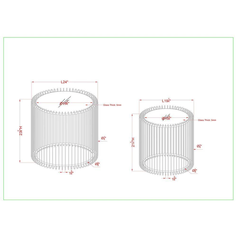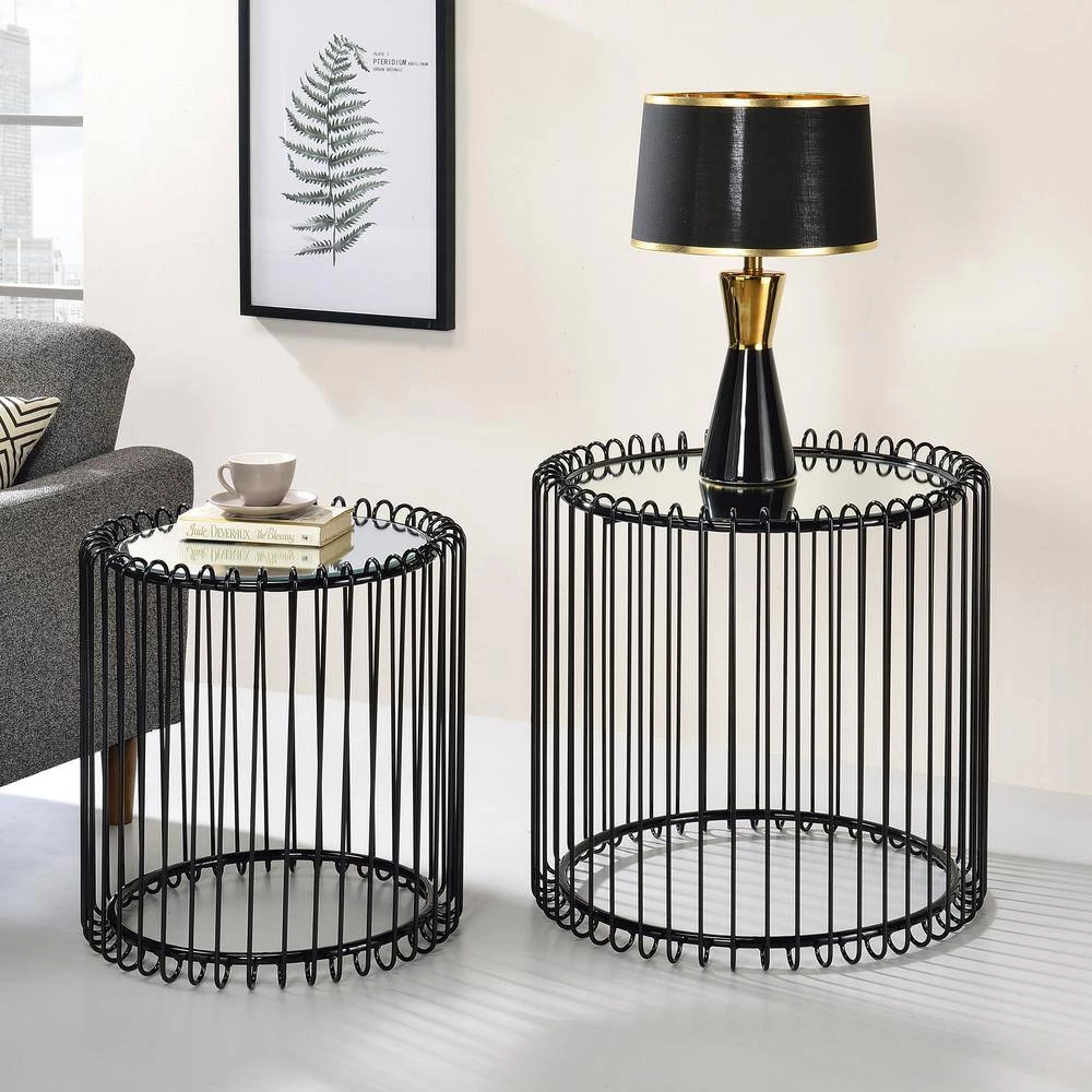 Crafted with bold, artful style this set of two nesting tables delivers interesting texture and dimension. Each table is round with a mirrored tabletop that calls attention to the base design. Its cage style boasts U-shaped outward curves at the top and bottom of each individual support. Offering sculptural flair in any living space, this nesting table set is a stylish and versatile addition to your compact living space.