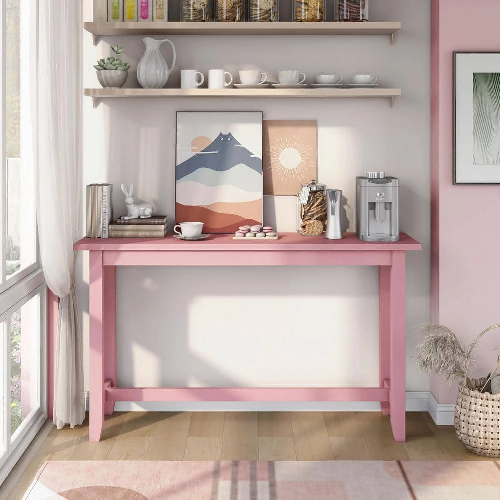 Compact and stylish, this counter height bar table is perfect for a small breakfast nook or open living space. It features a long and narrow tabletop that easily seats two and features an electrical panel with outlets and USB ports that add versatile functionality. This bar table easily doubles as a console or even as a work-from-home space when needed. Choose from three on-trend color options to set the right mood in your modern home.