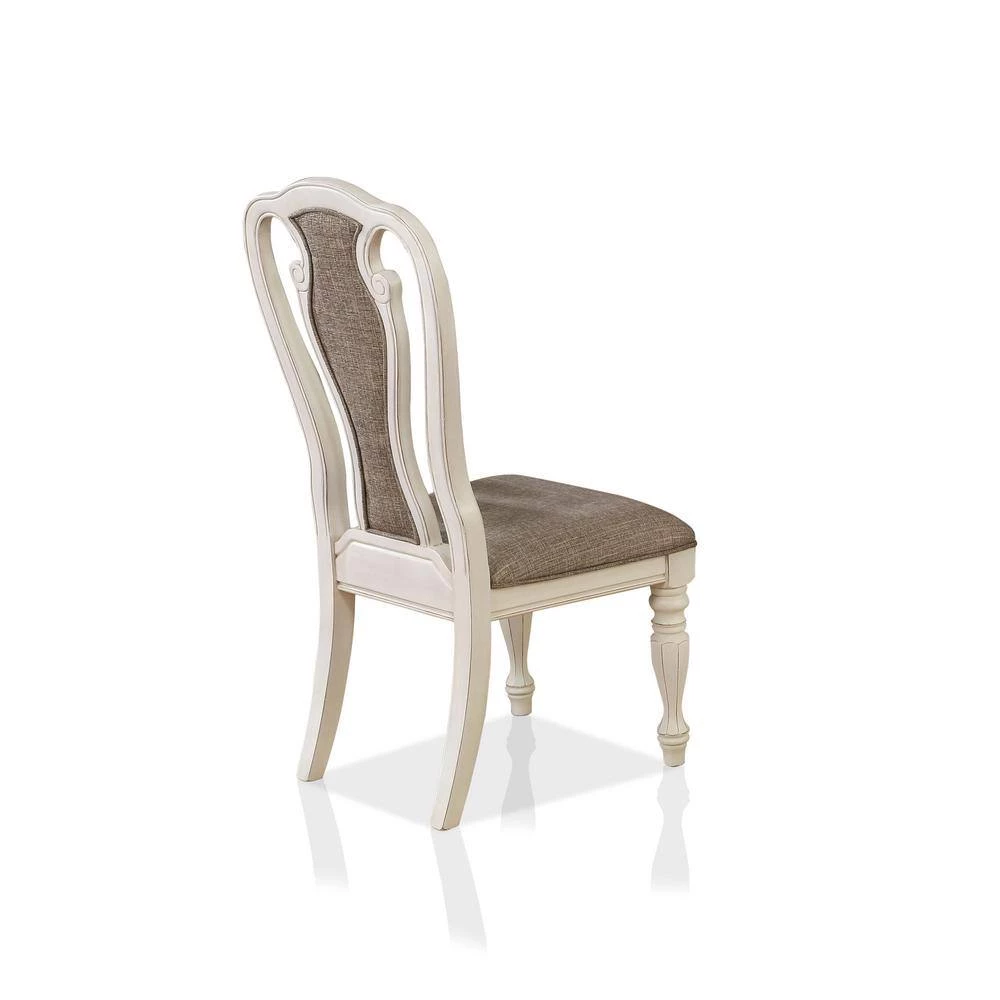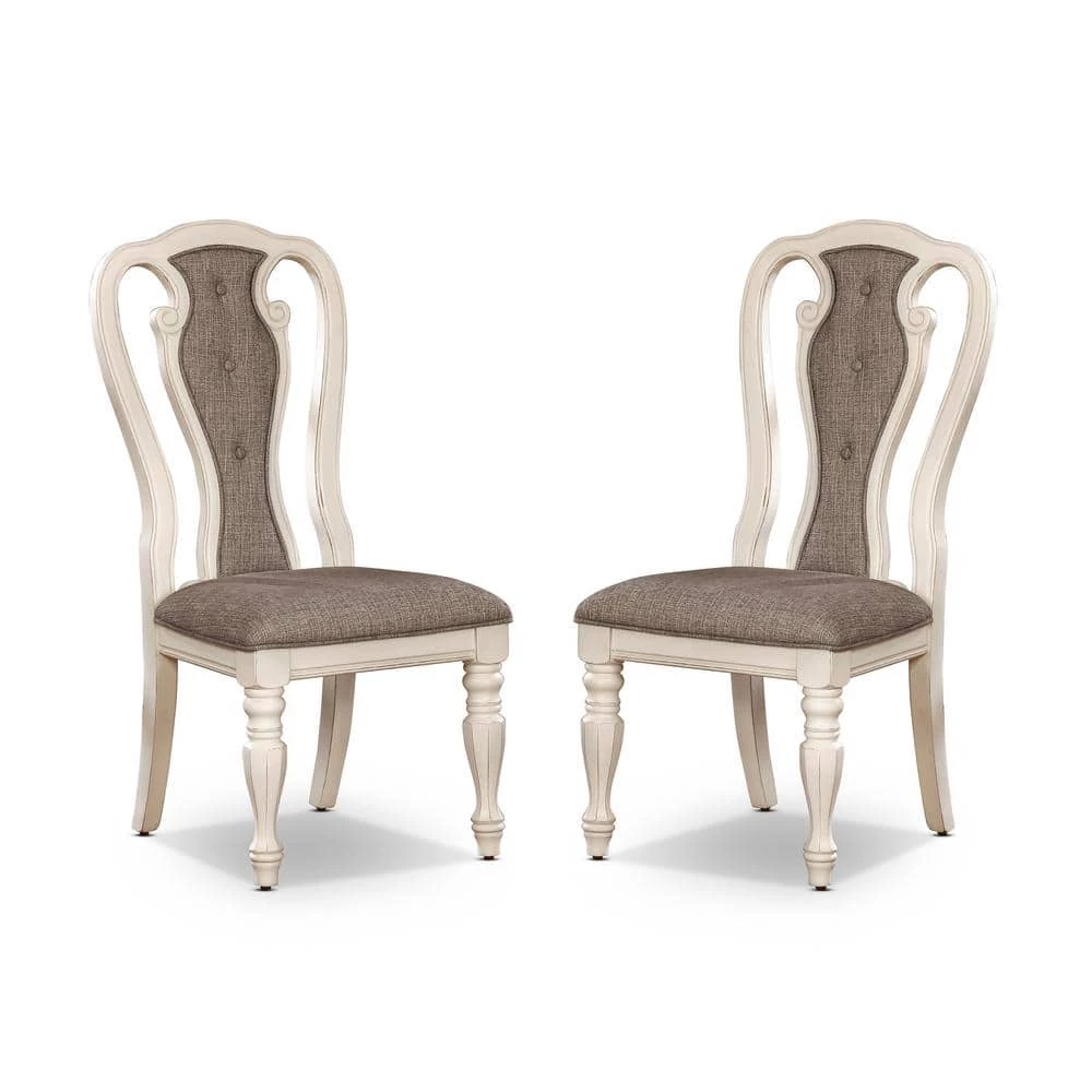 An ornate set of 2-side chairs bring charm and aesthetic appeal to any area of the home. Beautifully crafted with high attention to detail, the chairs feature spindle and angled legs with a lovely silhouette that you won’t forget. The back panel boasts an intricate cut out design with the ash brown button-tufted upholstery for support.