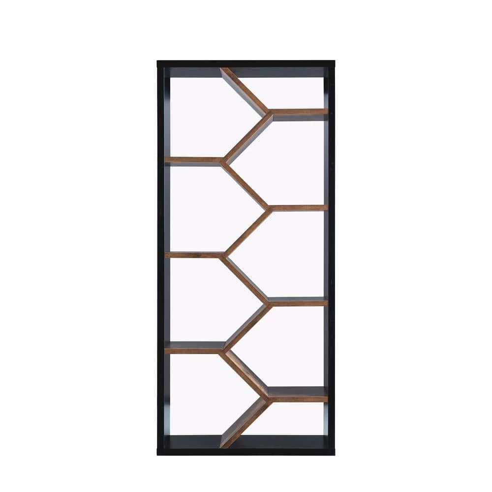 Configured in an interesting geometric pattern. This modern bookcase has plenty of storage for books and other display items, in varying shapes, heights and widths for visual interest and convenience. It’s tall and comes in three gorgeous finishes that’s perfect for your contemporary living room, bedroom or home office.