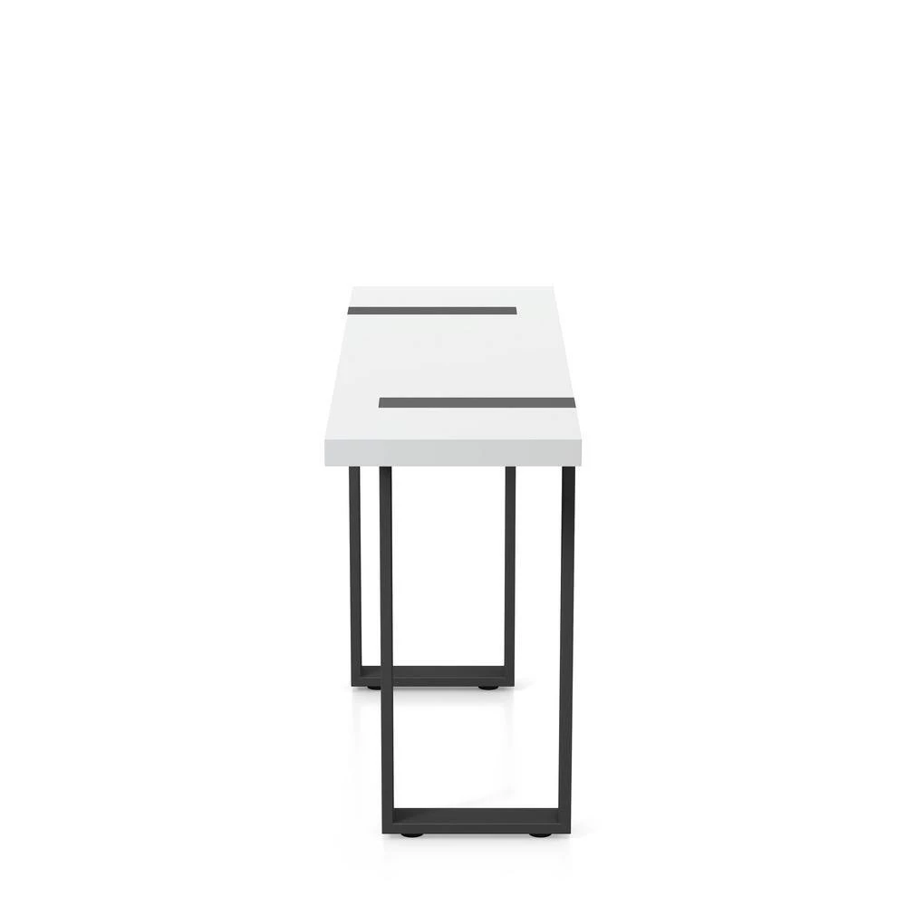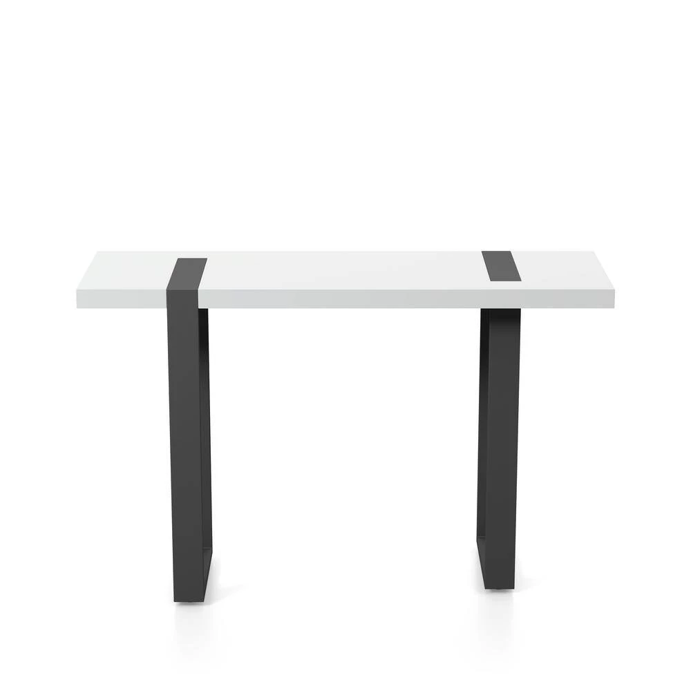 Add this contemporary sofa table in an entryway foyer or behind a seating area for an elegant modern flair. With a long white tabletop, this metal sofa table is supported by tall black legs that offer extra support and stability for whatever you rest on top. Its two-tone look offers plenty of visual interest and contrast, lending to existing color palettes.