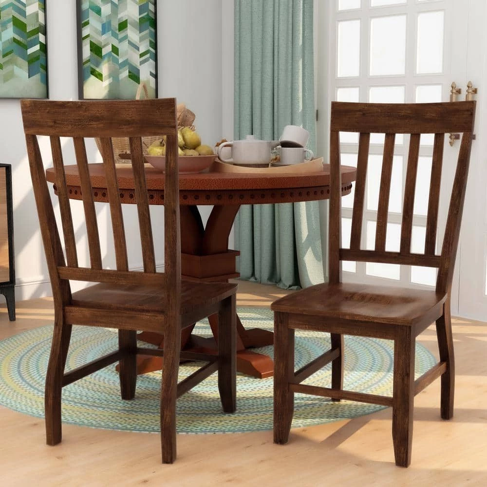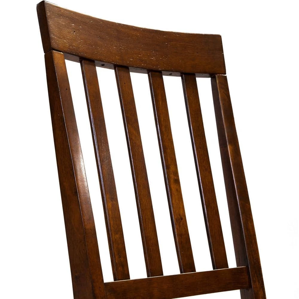 Simplify your dining room with the Dark Oak finished Henry Side Chair. Lovely slatted back rest creates an inviting dining room aesthetic while the soft contoured seat ensures comfort even during extended dinners. Trust the side chairs sturdy and durable rubber wood and acacia veneer construction and enjoy the lasting strength the solid wood design provides. For a simple and timeless dining room update to the Henry Dark Oak Wood Slatted Side Chair.