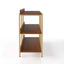 Genesis 32 in Light Walnut and Gold Wood 3-Shelf Open Bookcase by Furniture of America