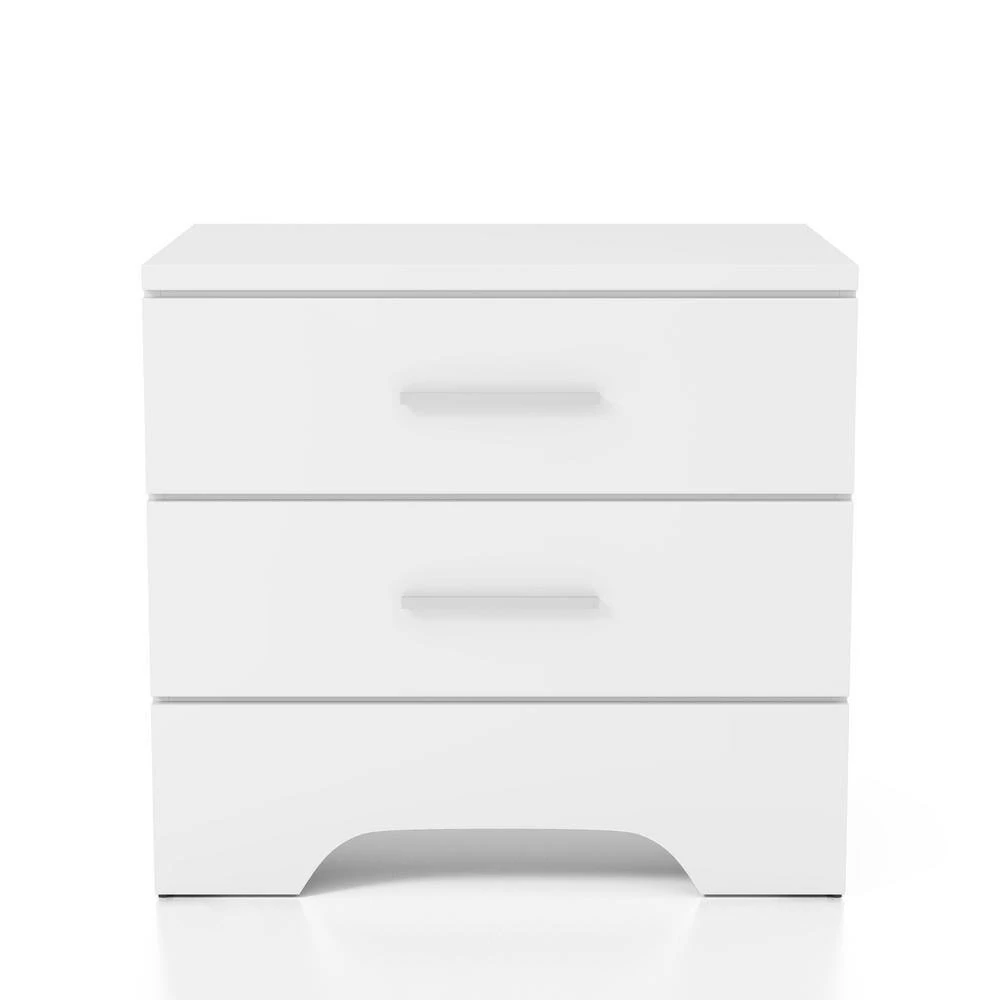 Make styling a bedroom simple with this two-drawer nightstand. A toe-kick base is the homely element that will never go out of fashion. But, if you would like to keep up with the latest trend you can always switch out the classy silver bar handles. The ball bearing glides of this eco-friendly construction are smooth and quiet, making it easy to open drawers. Select from different colors: White, Black, or Rustic Grey.