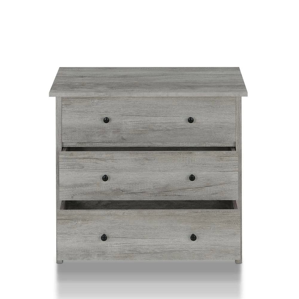 Add a traditional drawer to your interior design as a serviceable and fashionable decor item. This three-drawer cabinet makes for an exceptional guestroom drawer, keeping spare linens and towels. Select between a polite wenge or a distressed grey oak finish to match with the neutral black knobs.