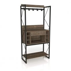 Manakara Distressed Walnut Baker’s Rack with 8-Bottle Wine Rack by Furniture of America