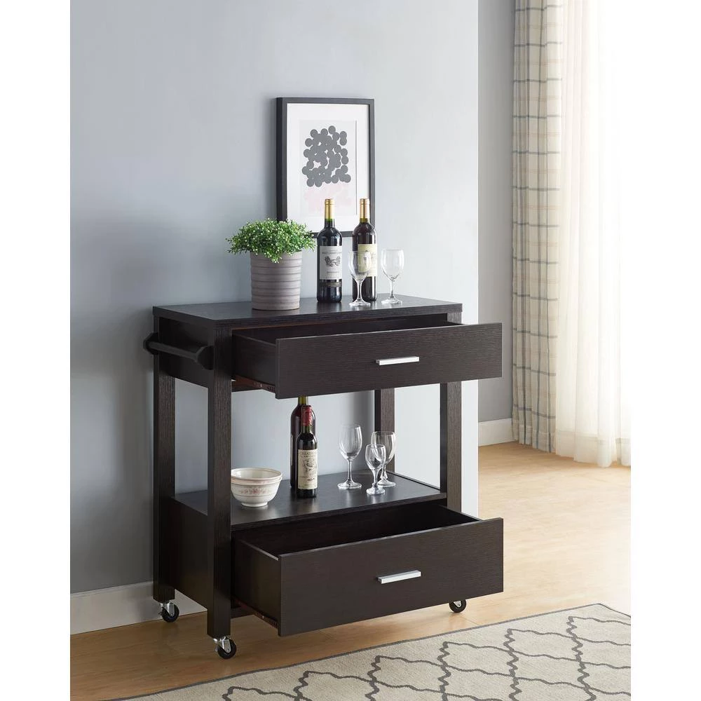 A serving cart gives an outstanding extension to the kitchen as it holds many roles. It works as an extra storage facet in the kitchen and a mobile cart when entertaining parties at the home. The caster wheels transferring appetizers from the kitchen to the dining room, where they park with locking brakes.