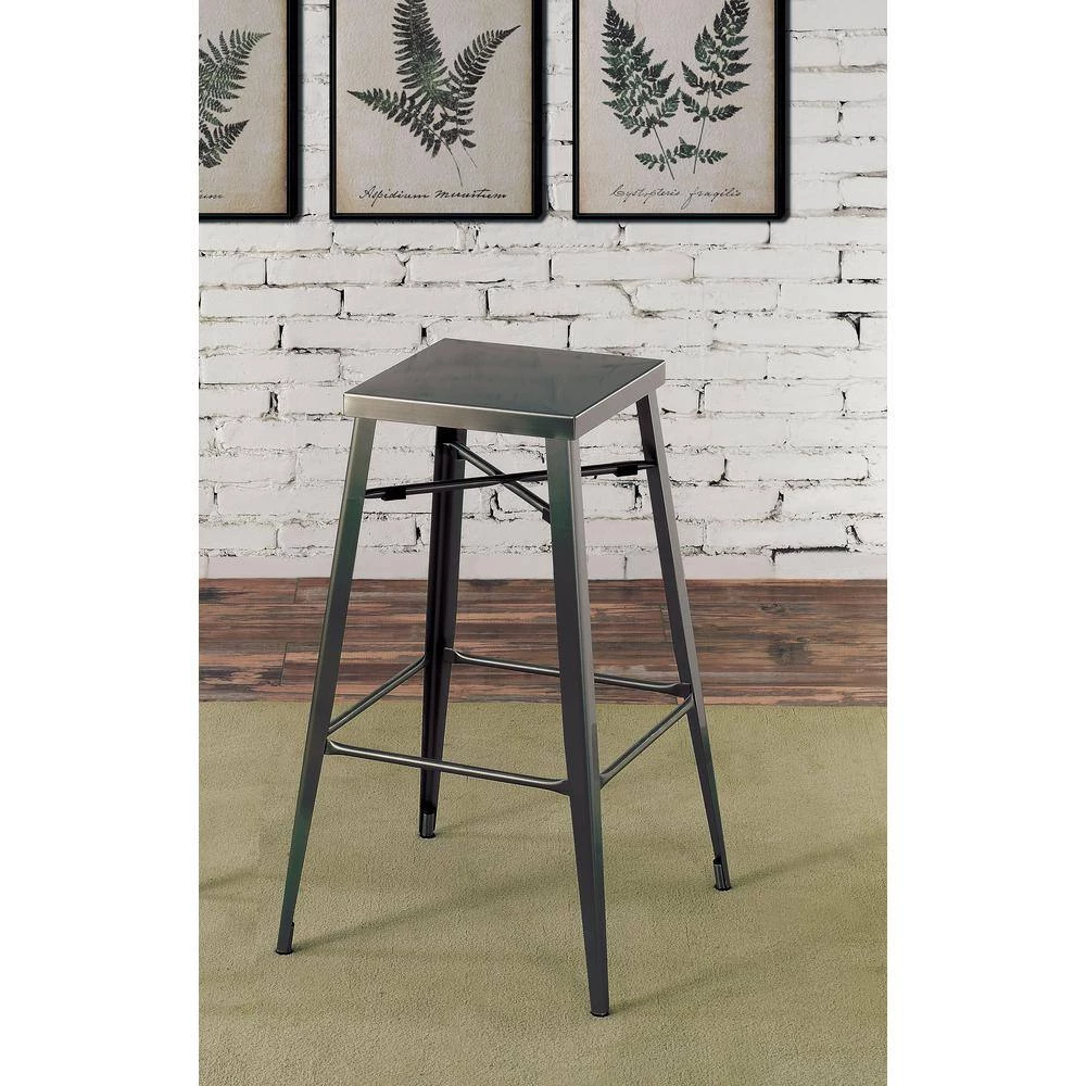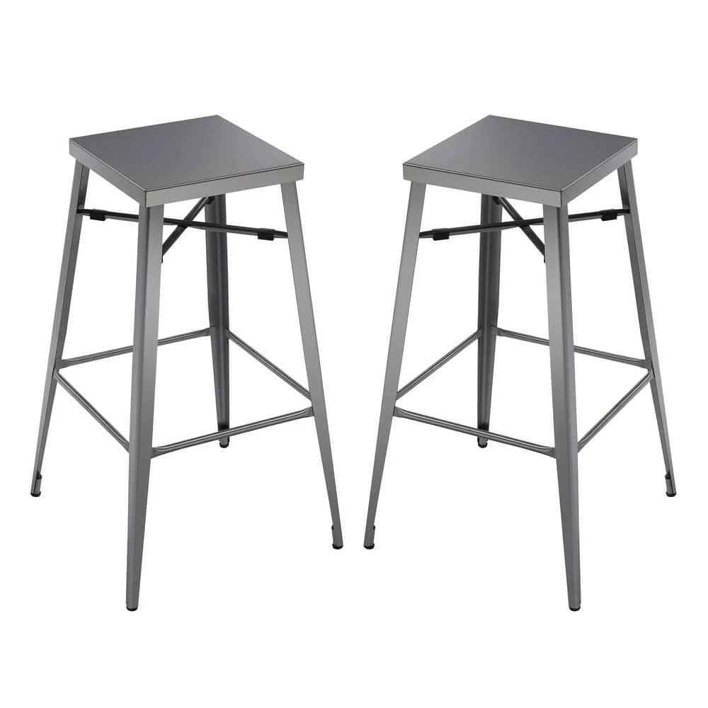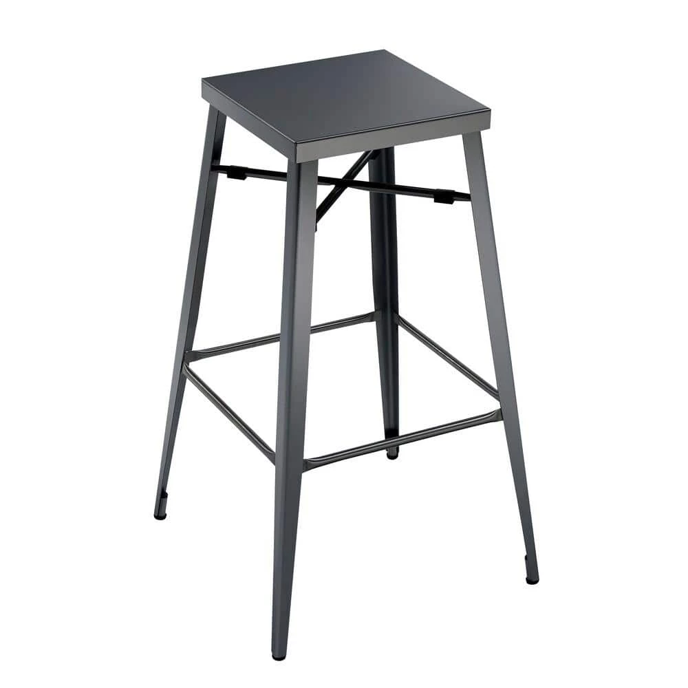 Darting, pointed legs and eye-catching X supports make up the sleek bar stool in gun metal by Latta collection. The simple square seats are complemented by built-in leg rests to ensure comfort while delivering a no-fuss industrial esthetic. Complete your bar with the simple and striking Bar Stool, crafted of gray tone metal for lasting quality and style.