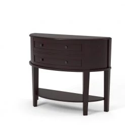 Axton 42 in. Dark Oak Standard Half Moon Glass Console Table with Storage by Furniture of America