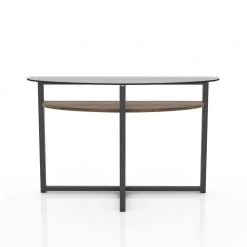 Nestillia 48 in. Brown Half-Circle Wood Console Table with 2-Shelf by Furniture of America