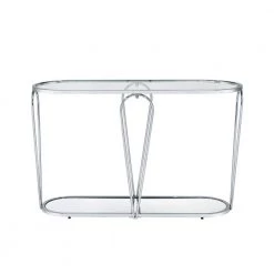Pari 47 in. Black Chrome/Clear Half Moon Glass Console Table with Storage by Furniture of America