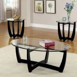 Arthur 3-Piece 30 in. Black/Clear Medium Oval Glass Coffee Table Set by Furniture of America