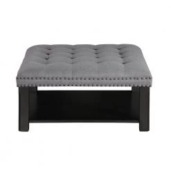 Wadesboro Gray Button Tufted One Shelf Ottoman by Furniture of America