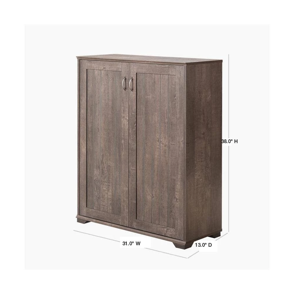 Increase the functionality of your entryway or living space area with this shoe cabinet by Furniture of America. Keep your Hallway clear and your shoes protected with 5 interior shelves that provide plenty of space for up to 16 pairs of shoes. Each of the doors features an attractive textured stripe design in 2-beautiful finishes that looks great with modern and transitional design themes.