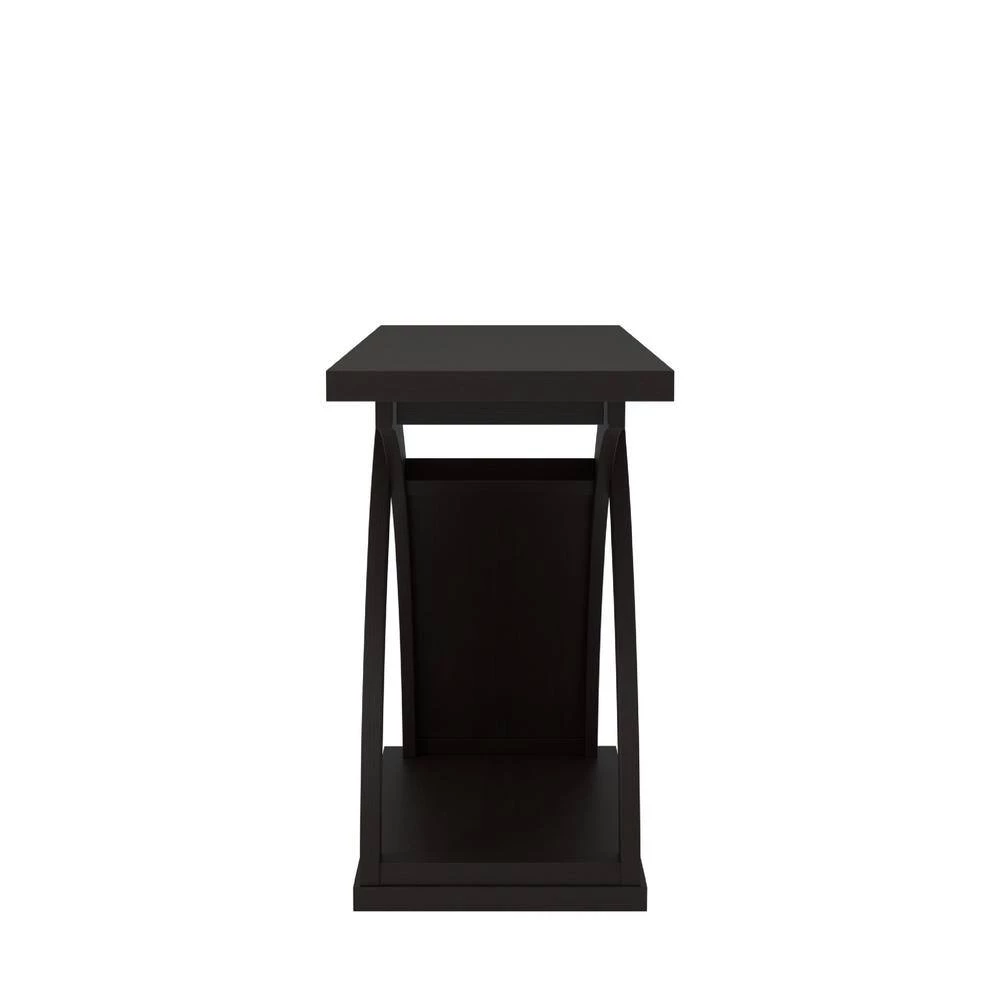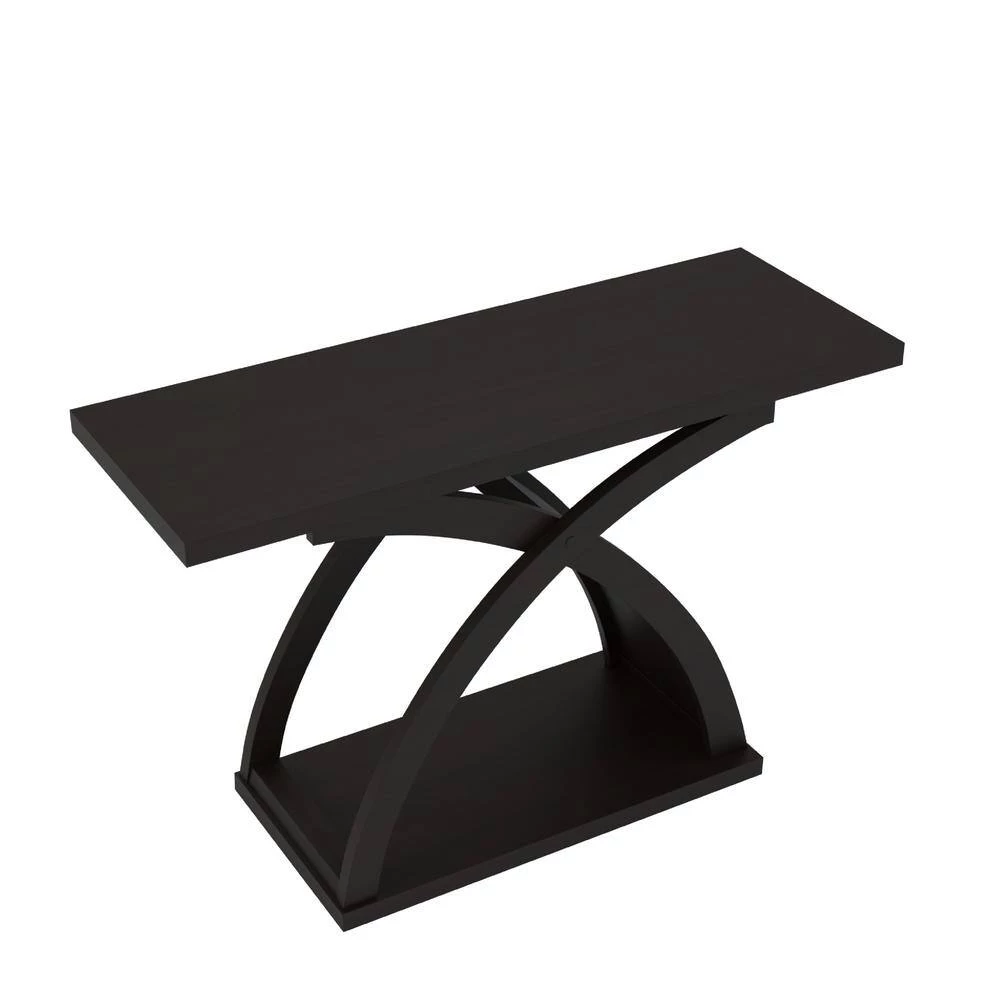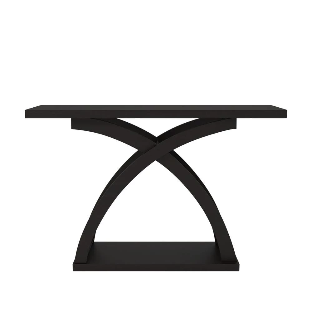 Luxor Sofa Table features a unique semi-discrete construction in rich espresso finish with an eye-catching X base. It also features a spacious tabletop as an artful stage for books, photos, candles, plants or follows. With a hanging painting upon the table as a light up point to your living space.