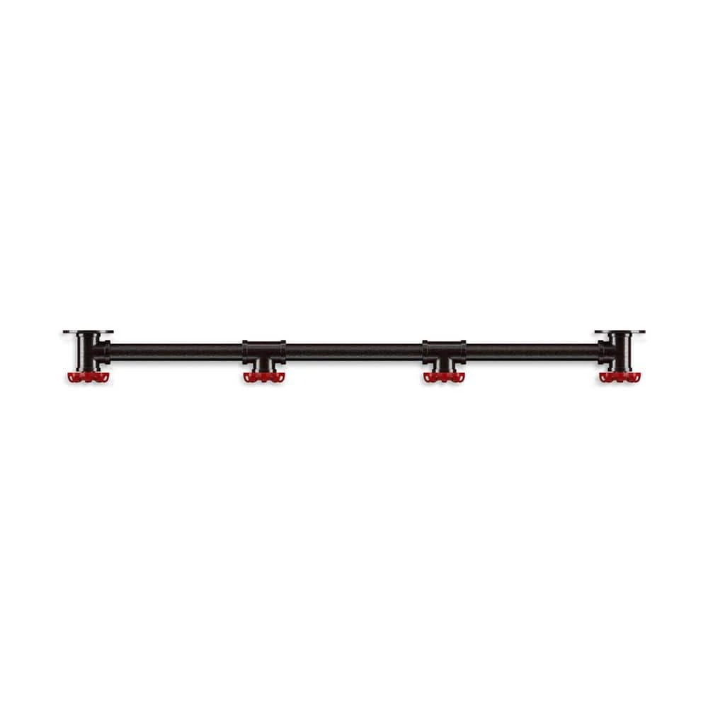 A Sand Black pure copper pipe wall-mounted coat hanger features unique red valves for hooks. The handles are perfect for a children’s fire station inspired bathroom! Mount 3, 4, or 5 spigots.