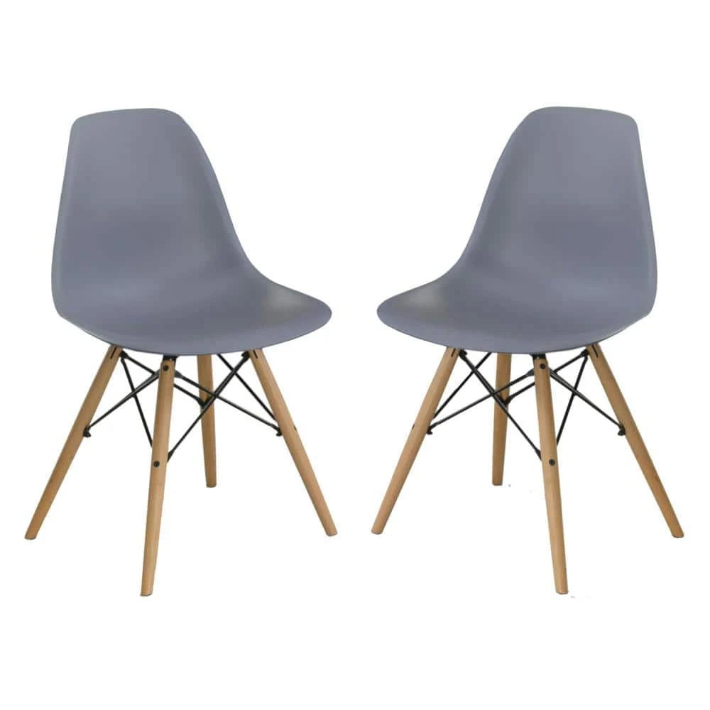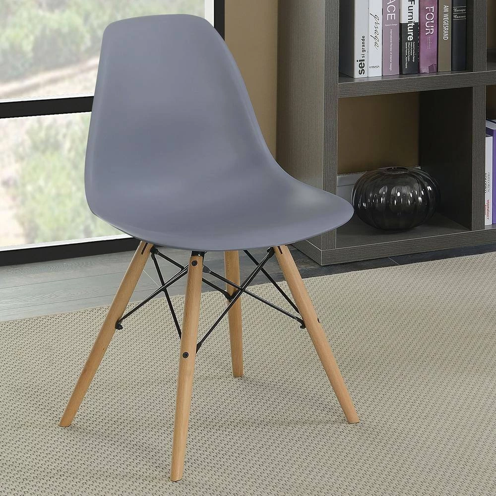 Lounge in comfort with the minimalistic Mid-Century Plastic Dining Side Chair. Available in multiple colors, the gray Dining Side Chairs features a smooth rounded framework that instantly streamlines the appearance of your home. Natural tone tapered legs are accented by darting steel supports for a look that is stylish as it is sturdy. This eco-friendly frame is constructed from rubberwood, a tropical, solid wood taken from rubber plantations.