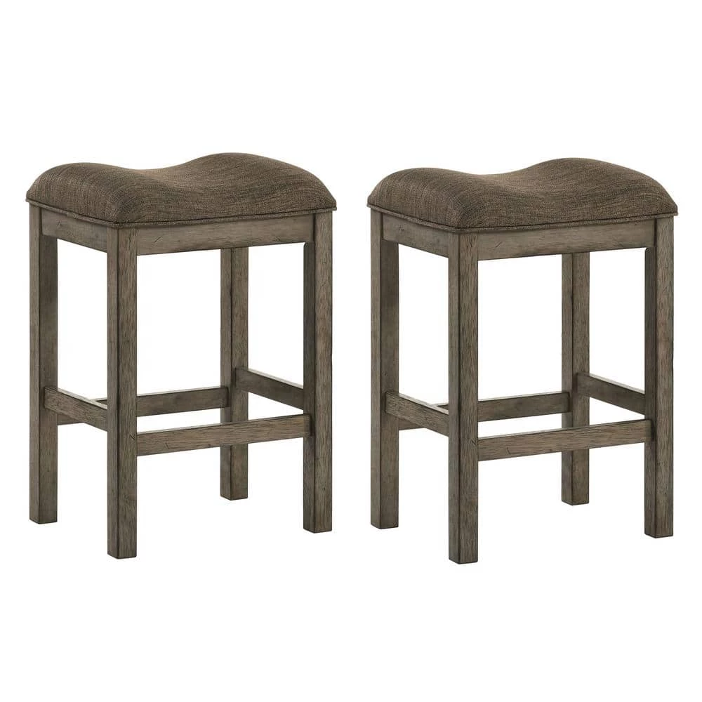 This set of two farmhouse-style bar stools are made from knotty oak veneer and solid wood. The seat is upholstered with a saddle seat, designed for comfort and style. The finish of the barstool is a dark brown chestnut (almost black) with subtle lighter browns, giving it a well-worn look. The barstool has a large backrest making it great for tall people and easy on the back when you’re sitting for long periods of time. Made from rubberwood, durable solid wood sourced from rubber plantations. After the sapwood is tapped for latex, the workable timber is harvested for furniture.