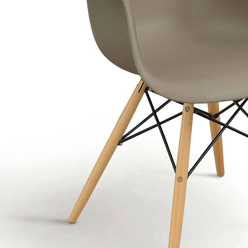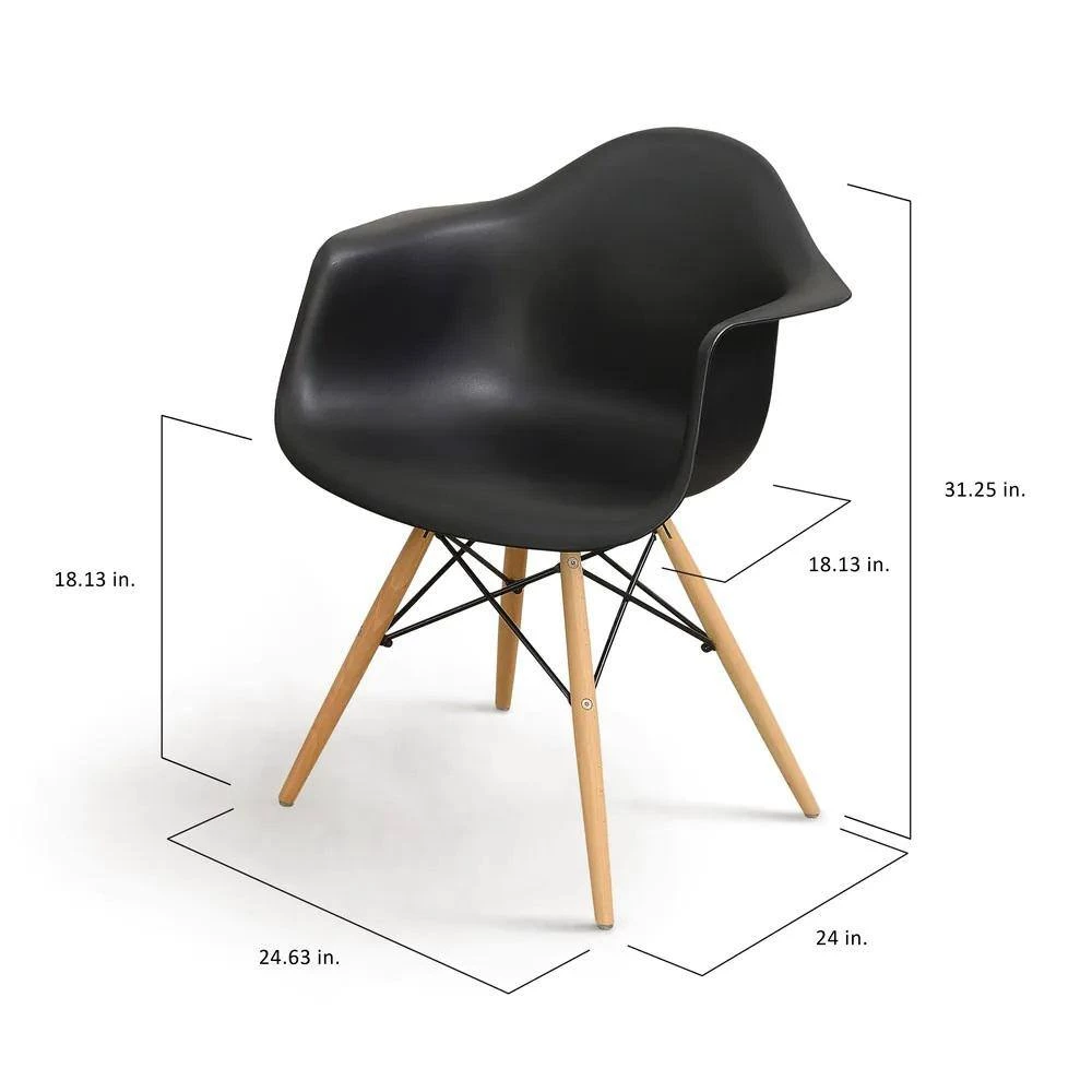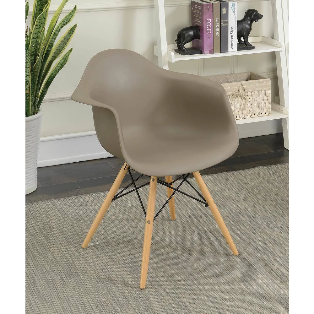 Lounge in comfort with the minimalistic Mid-Century Plastic Dining Arm Chair. Available in multiple colors, the light brown Dining Arm Chairs features a smooth rounded framework that instantly streamlines the appearance of your home. Natural tone tapered legs are accented by darting steel supports for a look that is stylish as it is sturdy. This eco-friendly frame is constructed from rubberwood, a tropical, solid wood taken from rubber plantations.