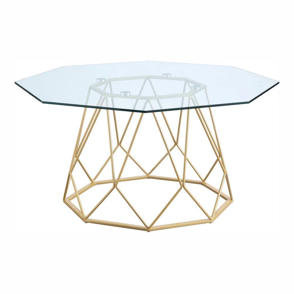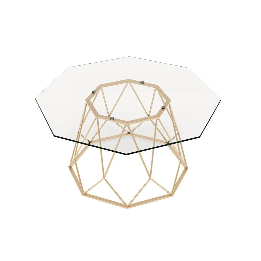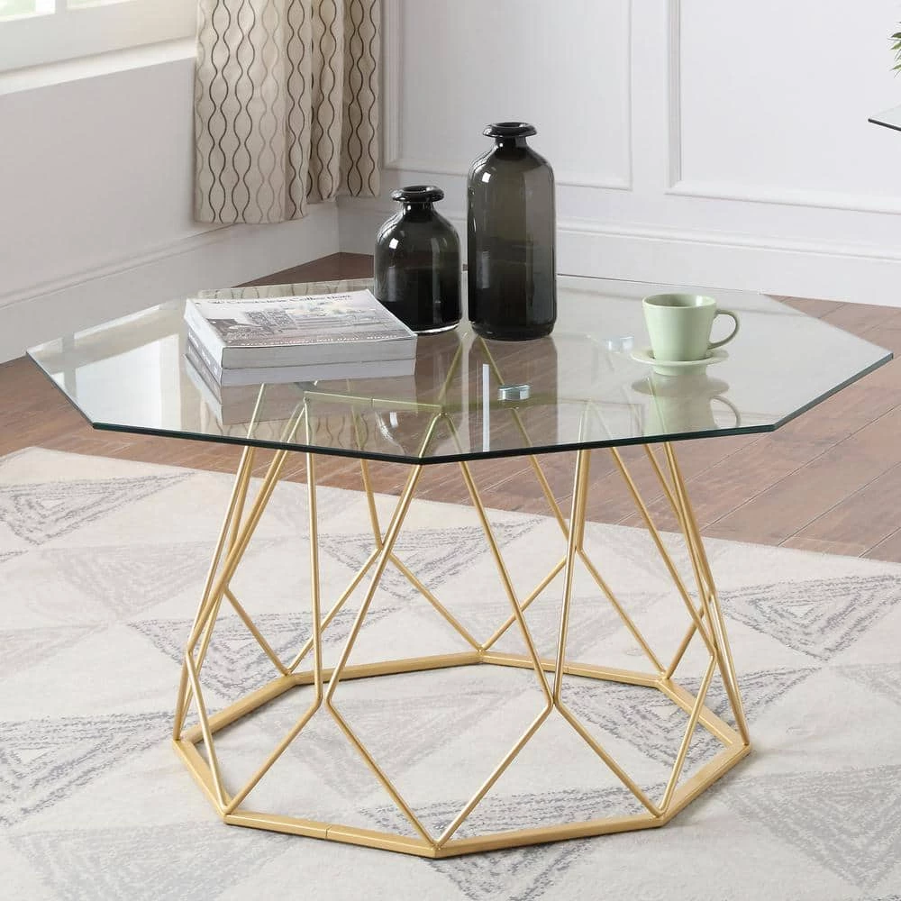 Craft an exceptionally stylish space with this eye-catching coffee table. This geometric coffee table makes its mark in your living room with a tempered glass tabletop, spacious and equipped for placing drinks, snacks, and decor. The base of the coffee table is engineered for durable metal, molded into delightful geometric designs that will immediately catch the eye of all guests.