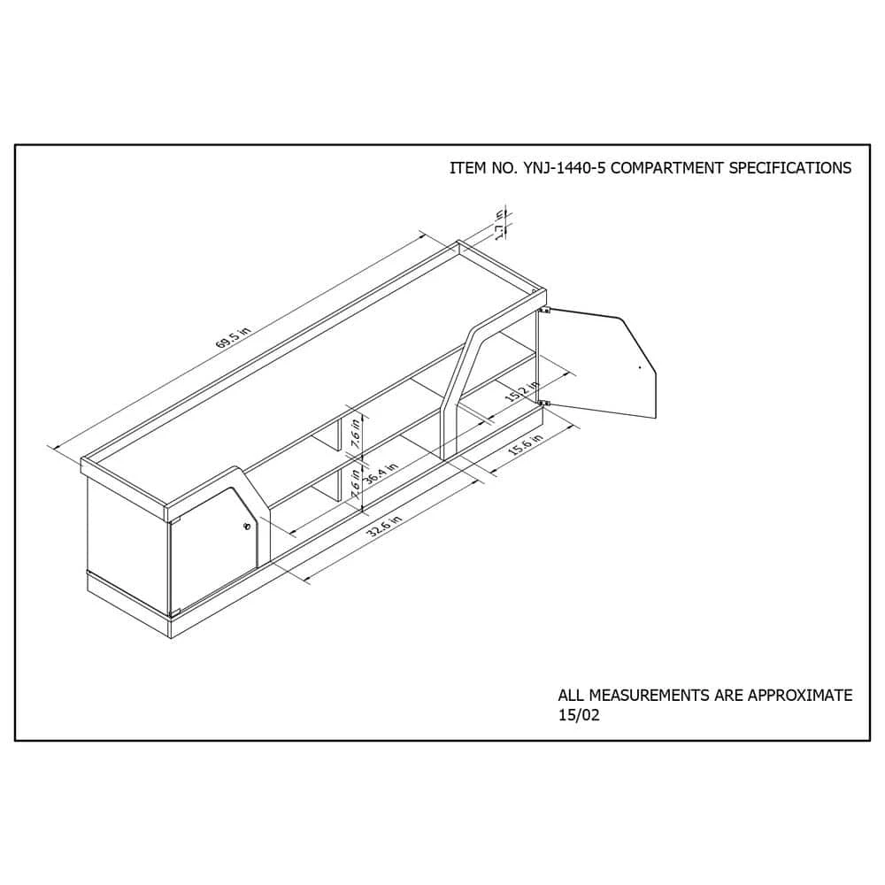 - 21.42 in. H x 70.8 in. W x 16.3 in. D