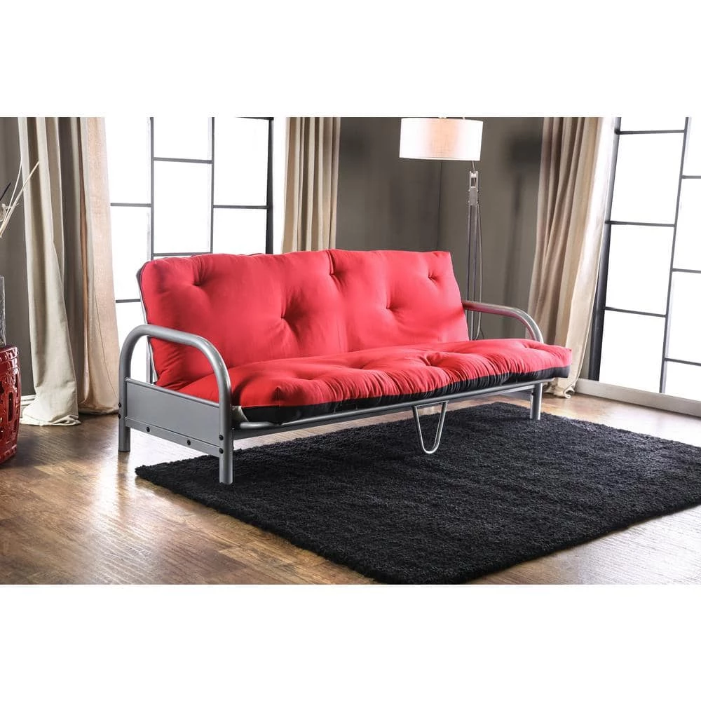 The Futon Mattress Brown by Furniture of America is versatile and stylish. Crafted with a two-tone black and red cotton and polyester blend fabric, the tufted mattress allows you to fresh your look by simply flipping the mattress. The thick 6-inch mattress complements the eye-catching design as it allows you to conveniently convert the piece into a spacious bed for guests. Resting atop a sturdy metal framework, the Futon Mattress delivers a functional modern touch that helps simplify your home.
