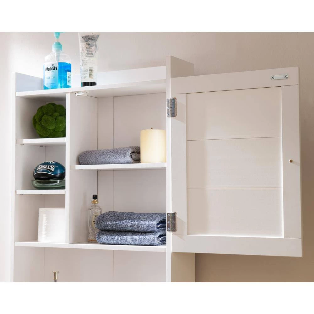 Reinvent your bathroom with the peoni white bathroom space saver cabinet with gorgeous white finish and storage galore. The tall, slim structure is perfect for compact bathrooms with little storage. The multiple open shelves and enclosed cabinet provide a variety of storage options that will keep products neatly organized and easy to find.