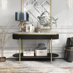 Kivelle 47.75 in. Dark Walnut and White Oval Wood Console Table with Drawer by Furniture of America