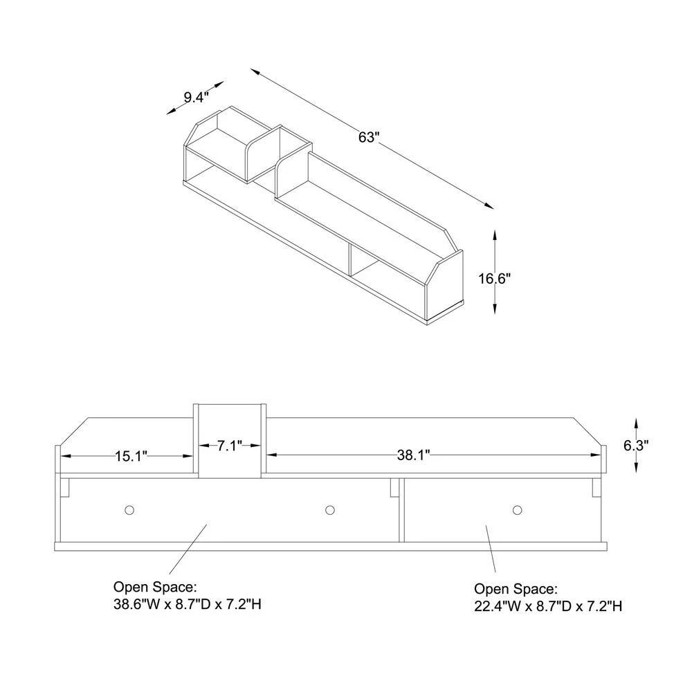 - 16.6 in. H x 63 in. W x 9.4 in. D