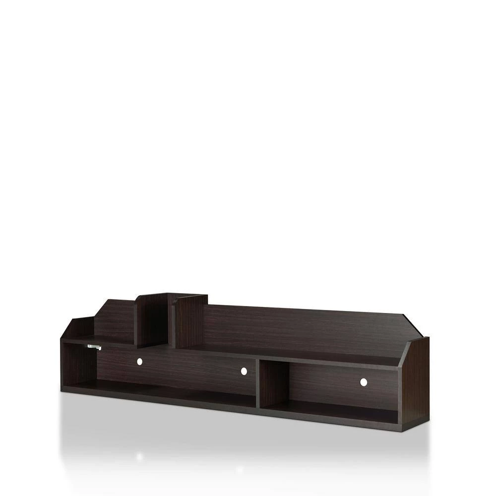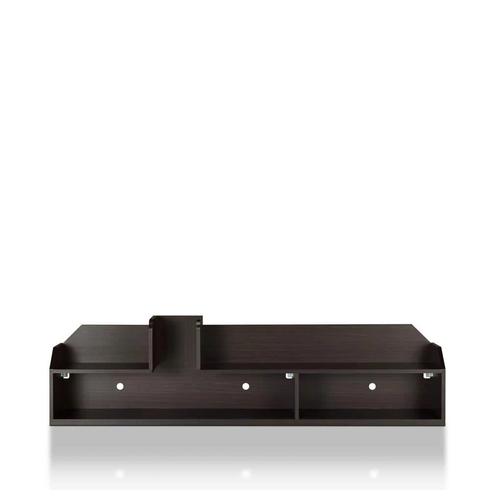 This contemporary floating TV Console is a modern floor-space saving furnishing that declutters your space. 3-wire holes on the bottom shelves make it simple to organize cables without trouble. Its elegant and sophisticated also goes perfectly in any room style.