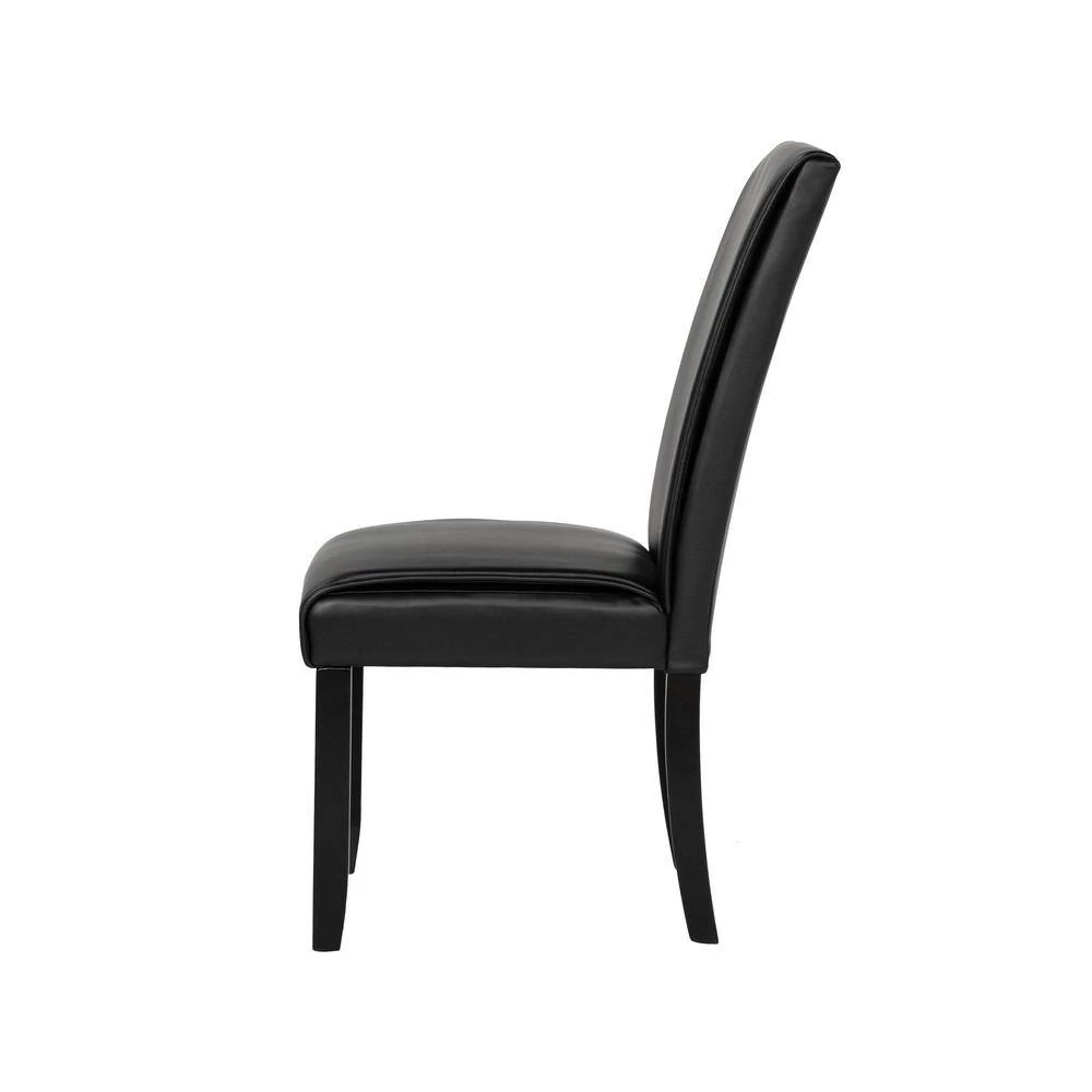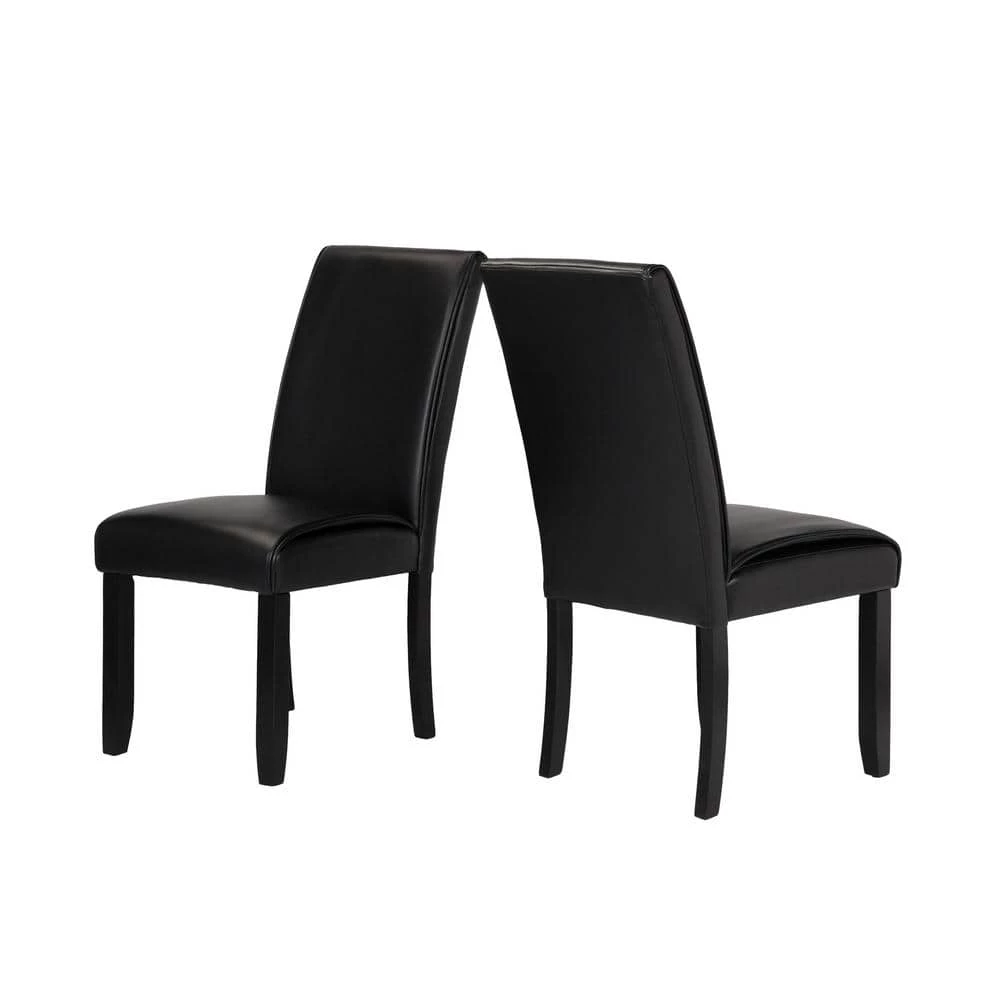 The faux leather Parson Dining Chair in Black boasts a bold presence that brings a soothing sense of calm to your dining space. The beautiful design of this statement piece was built for your dining comfort and relaxation. Featuring padded faux leather upholstery complete with a flawless welt trim lining, the faux leather Parson Dining Chair in Black is complete in a 2-piece set perfect for friends and family.