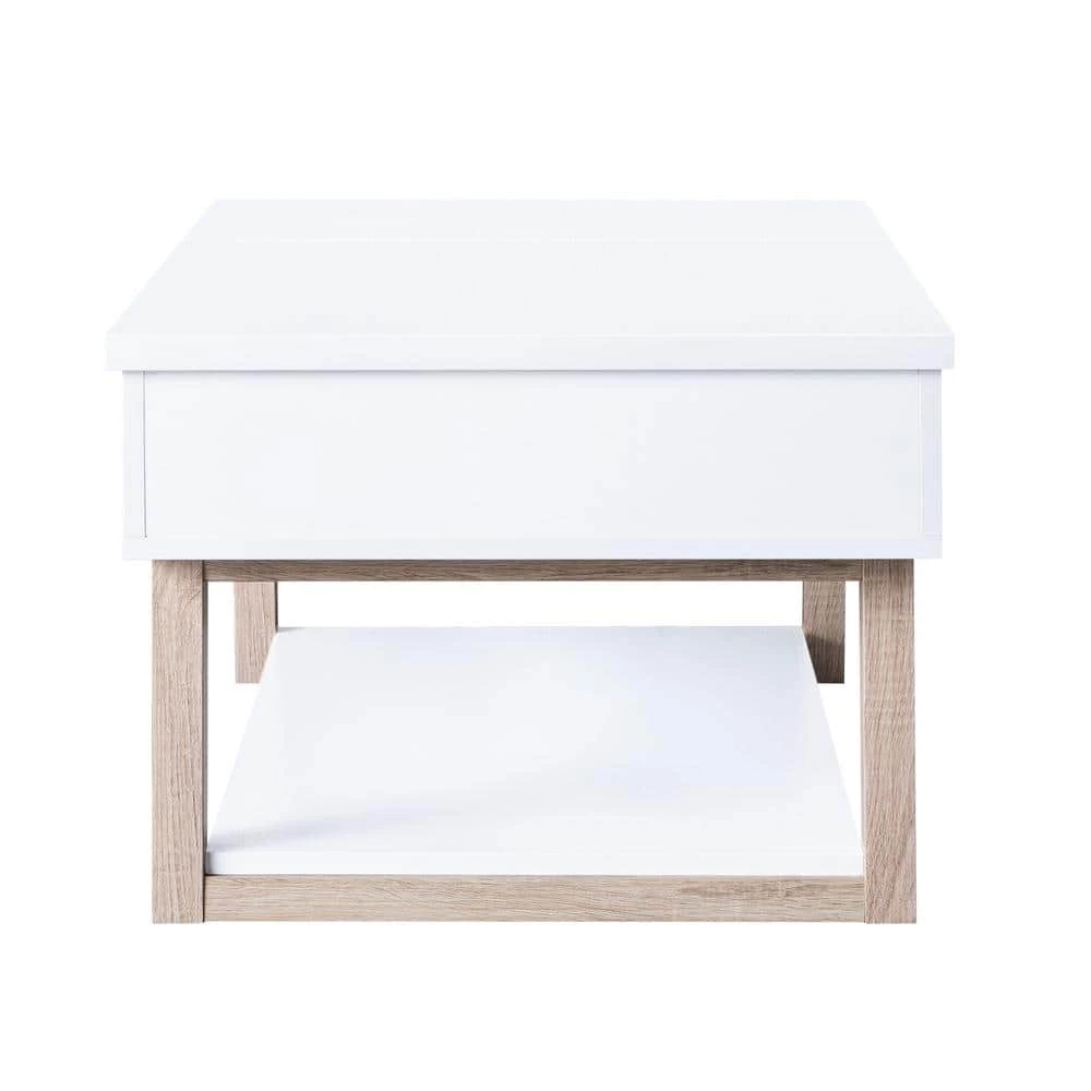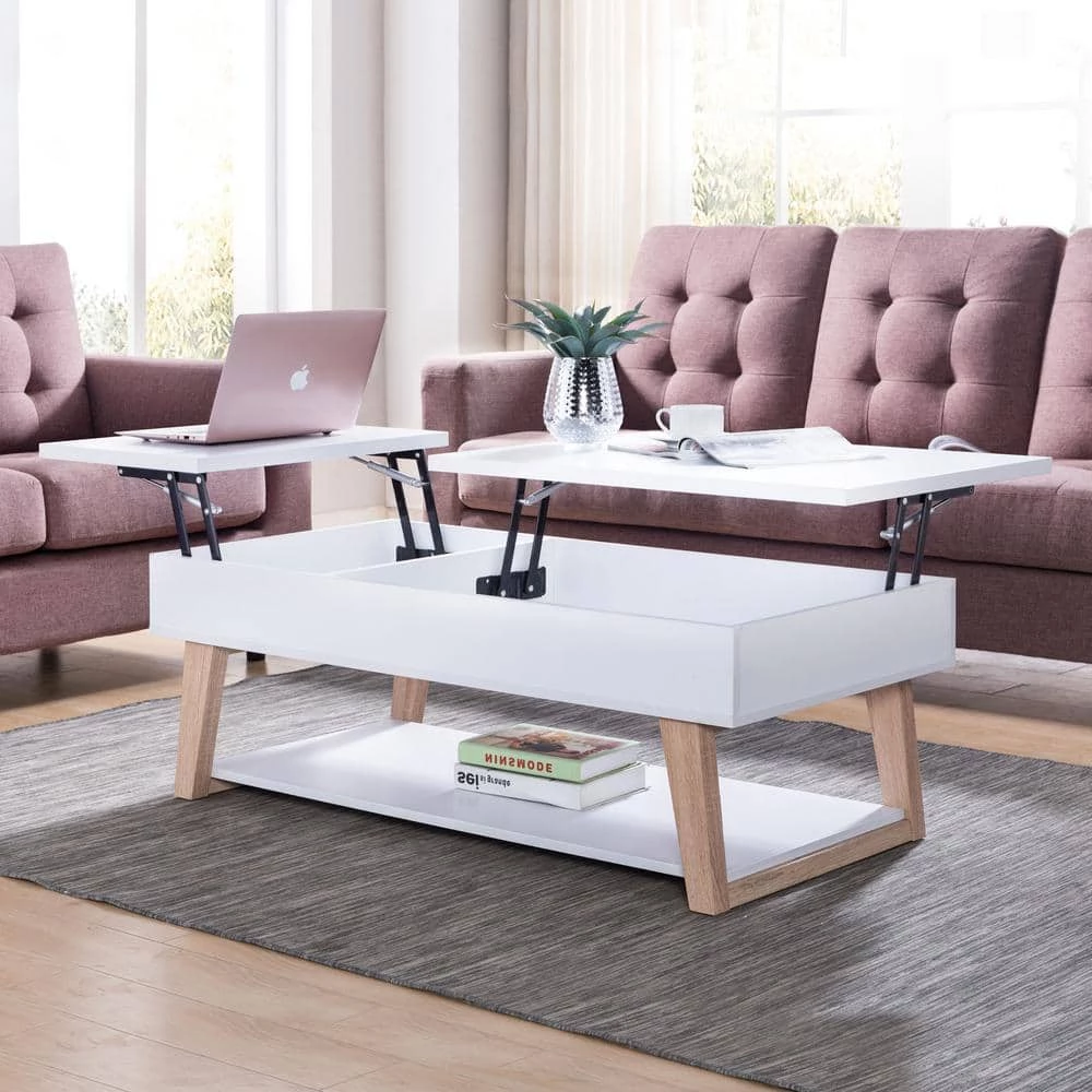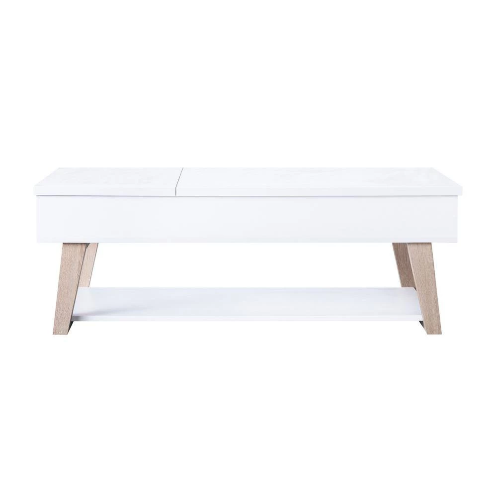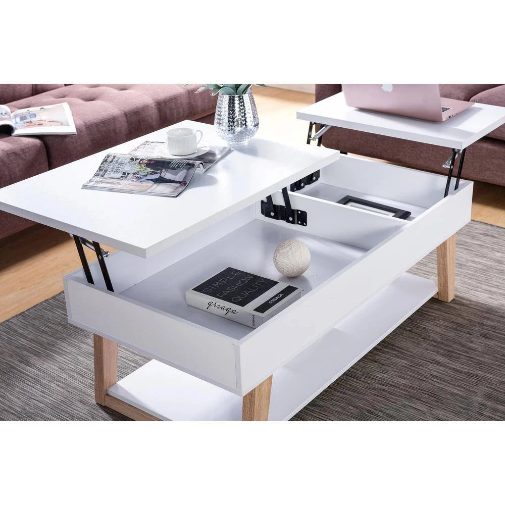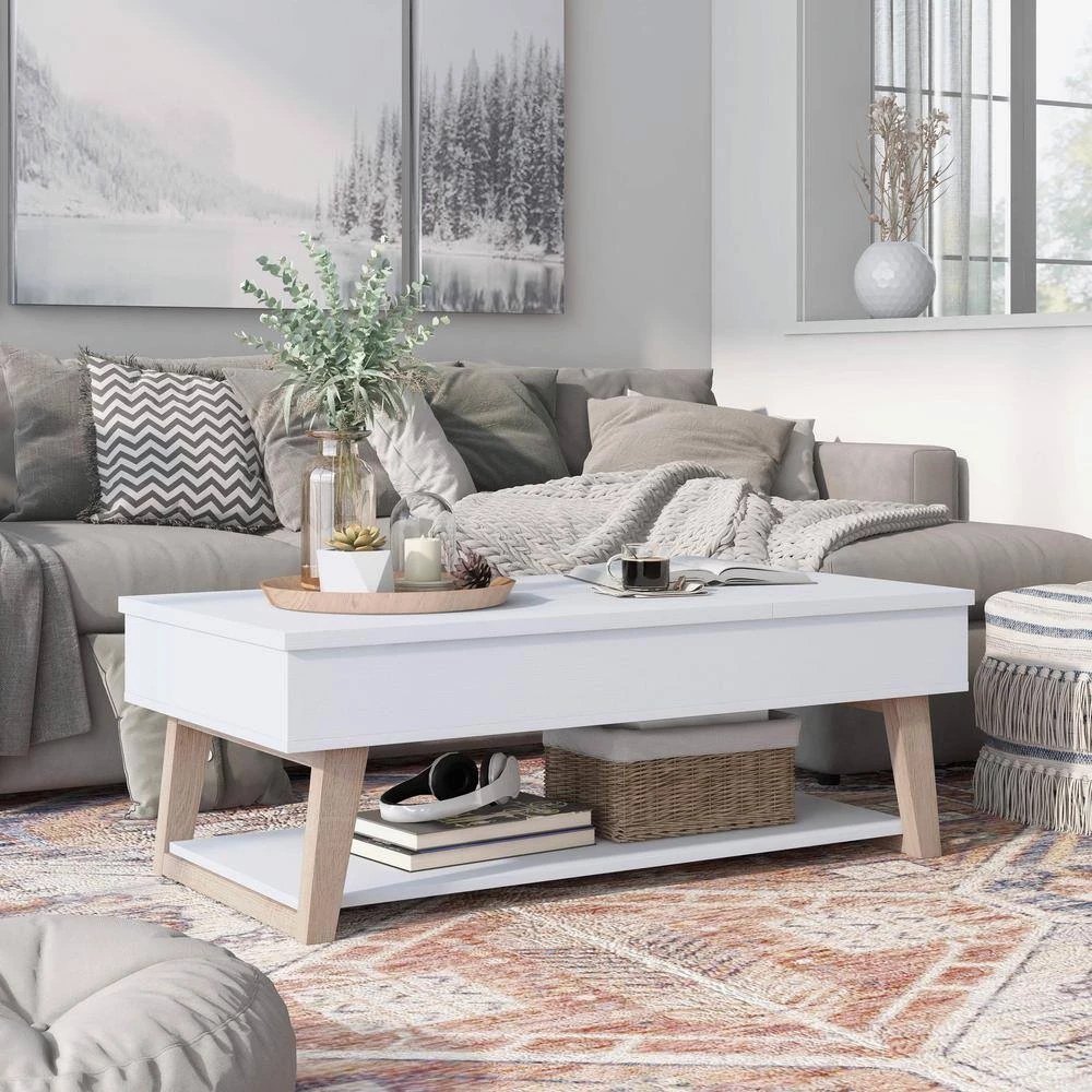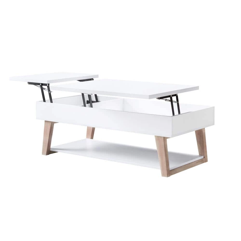 Spruce up your home interior with this contemporary coffee table. Made up of wood and metal, this table features modern angled legs to give a strong look and feel to the wooden tabletop. This table has a storage compartment with easy lift up top making it perfect for compact spaces and modern looking homes. The wood angular feet have superior strength that will provide brilliance and sturdiness.