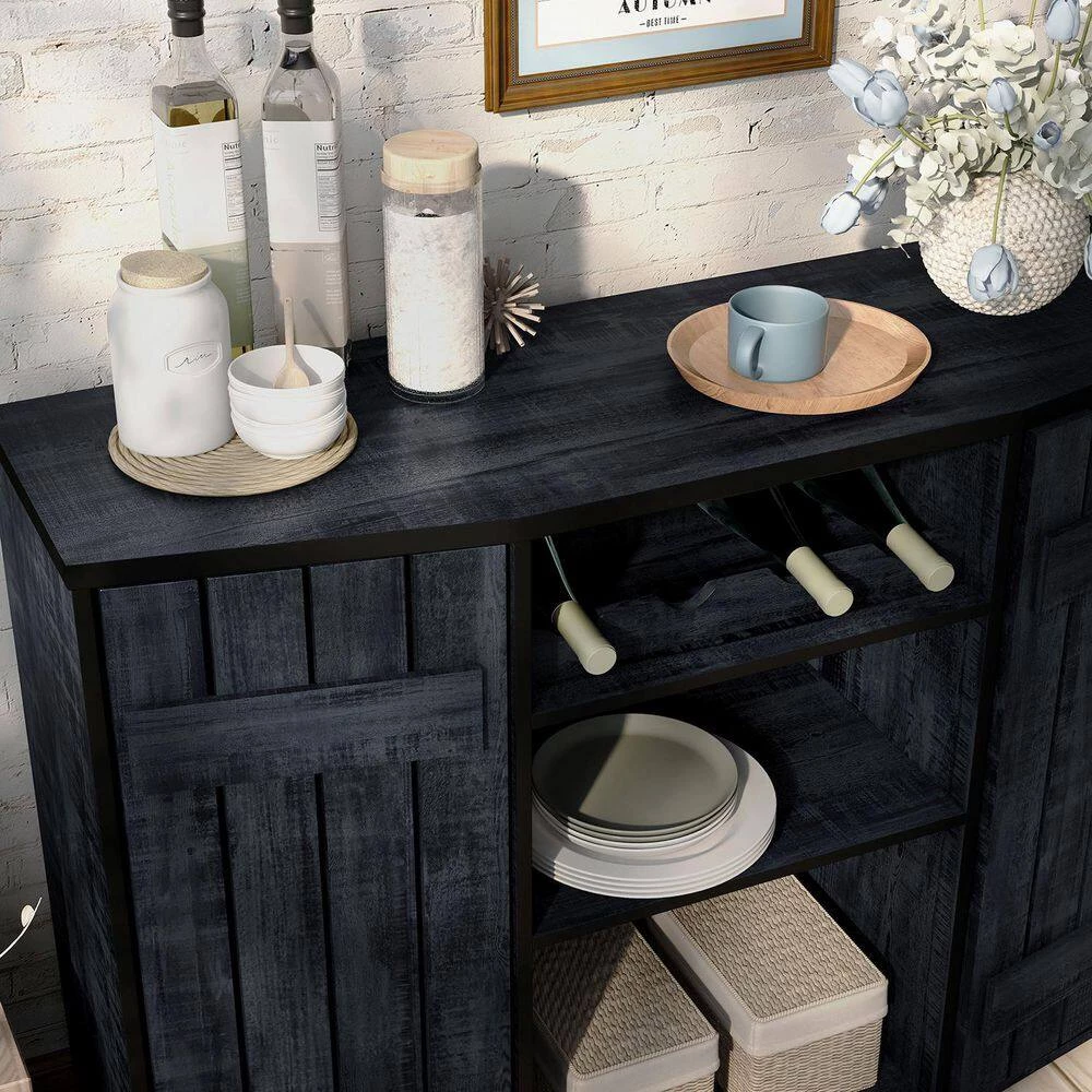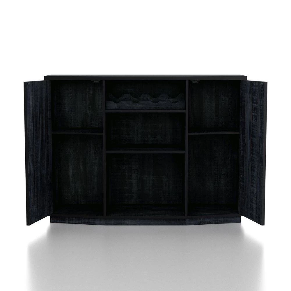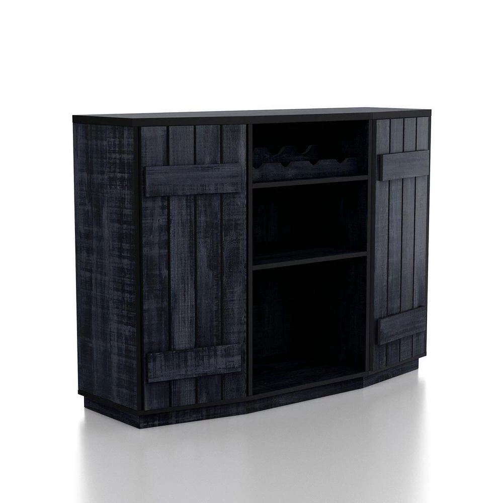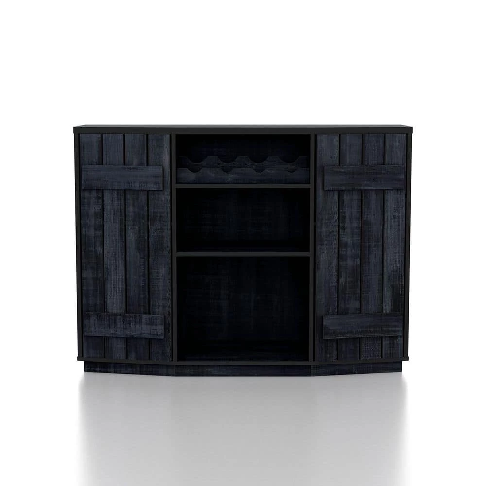 Elevate your bar area with southern charm with this wine cabinet! Slatted cabinet doors add a rustic flair that complements a farmhouse or industrial-style space. Perfect for wine lovers, the unit provides storage for up to 23 wine bottles! This unit can also double as a coffee bar. The two cabinets offer two shelves to store dinnerware, additional bar essentials, and so much more!