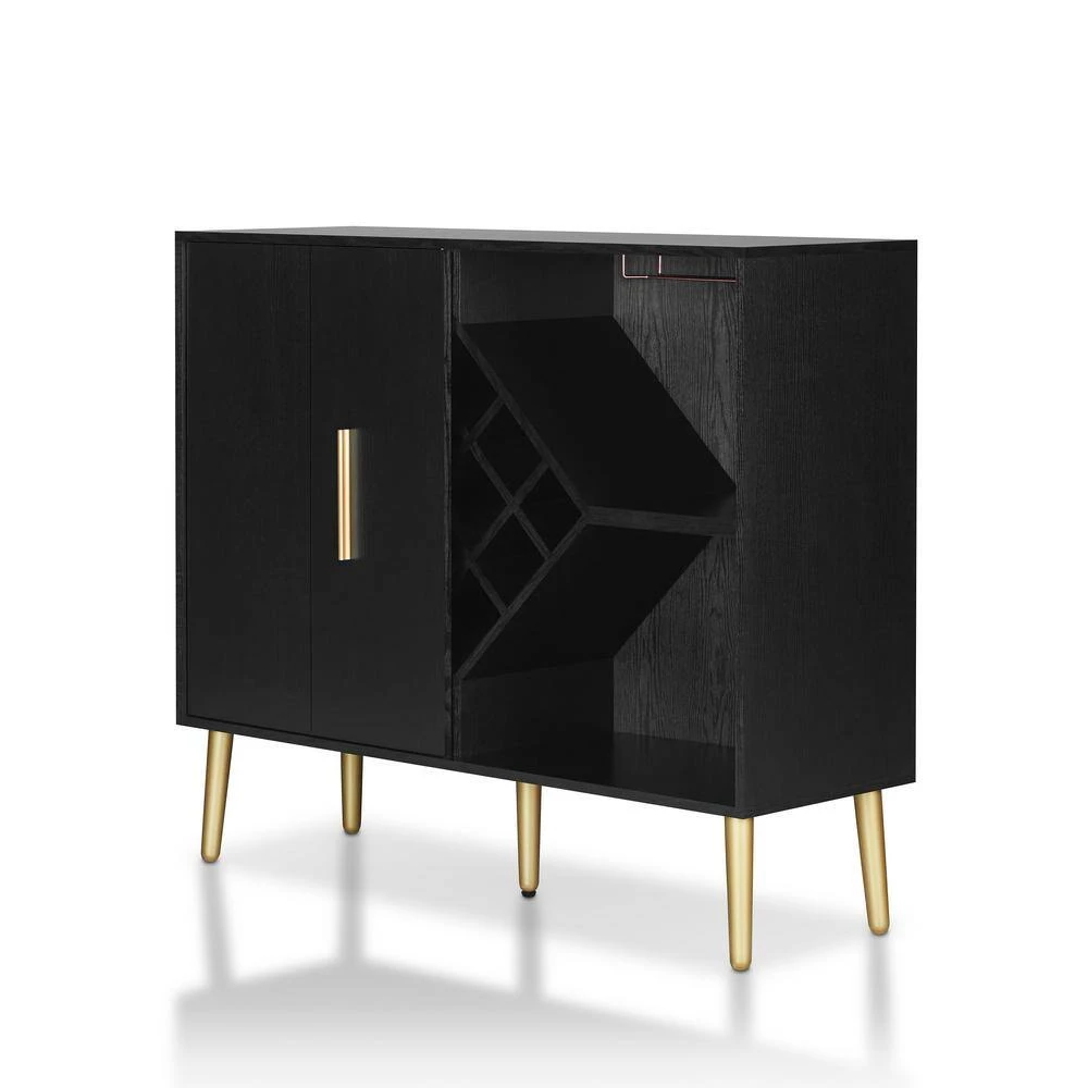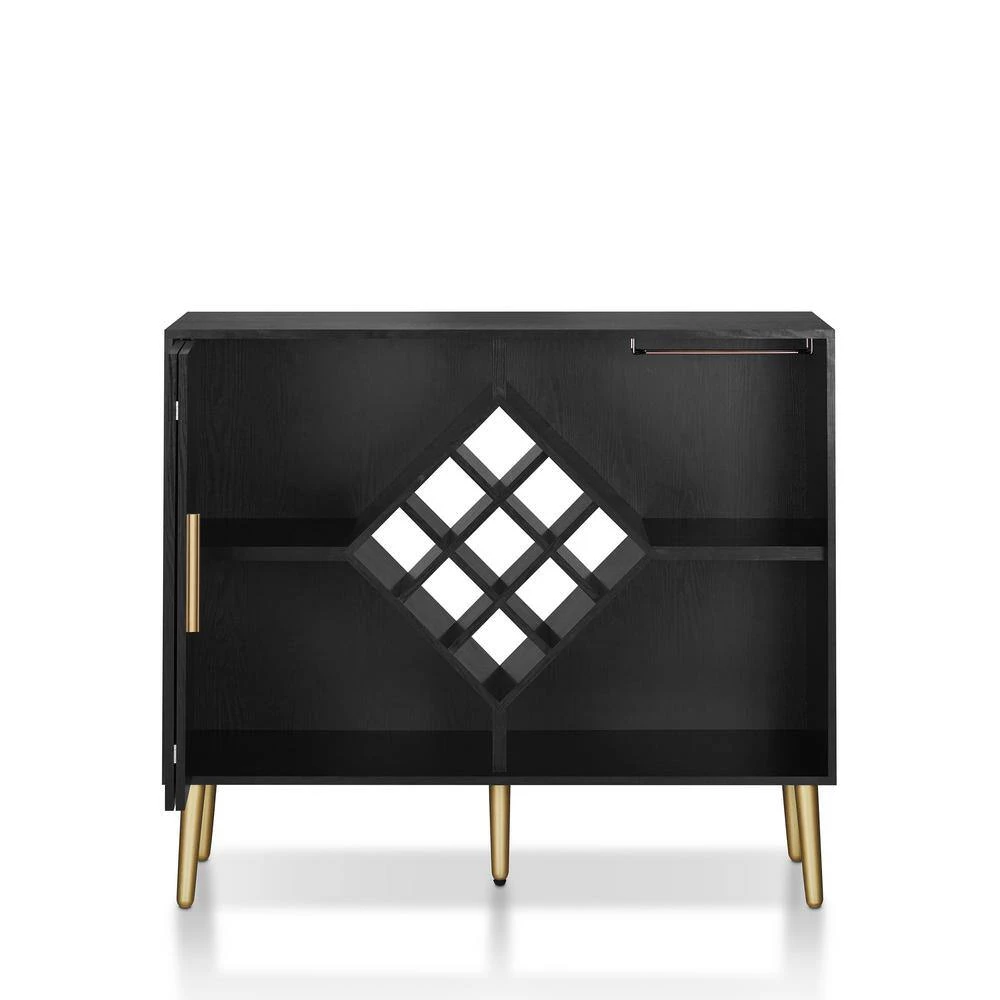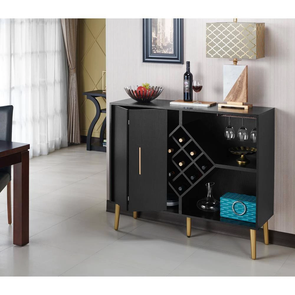 A sleek addition to any entertaining area. The Tarte espresso finished wine cabinet showcases ample storage space to hold accessories while the open wine rack design holds plenty of bottles. The mid-century modern legs add stylish appeal to the overall structure.
