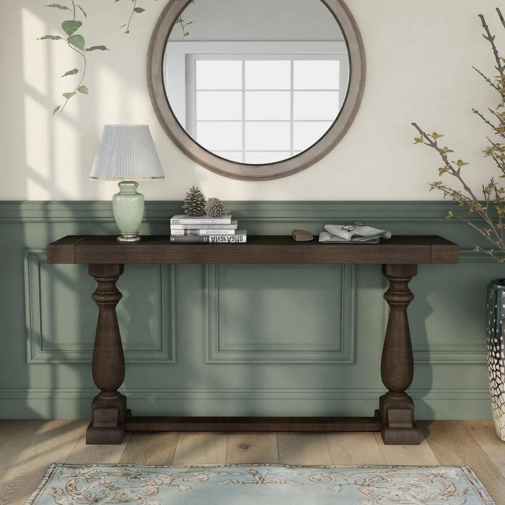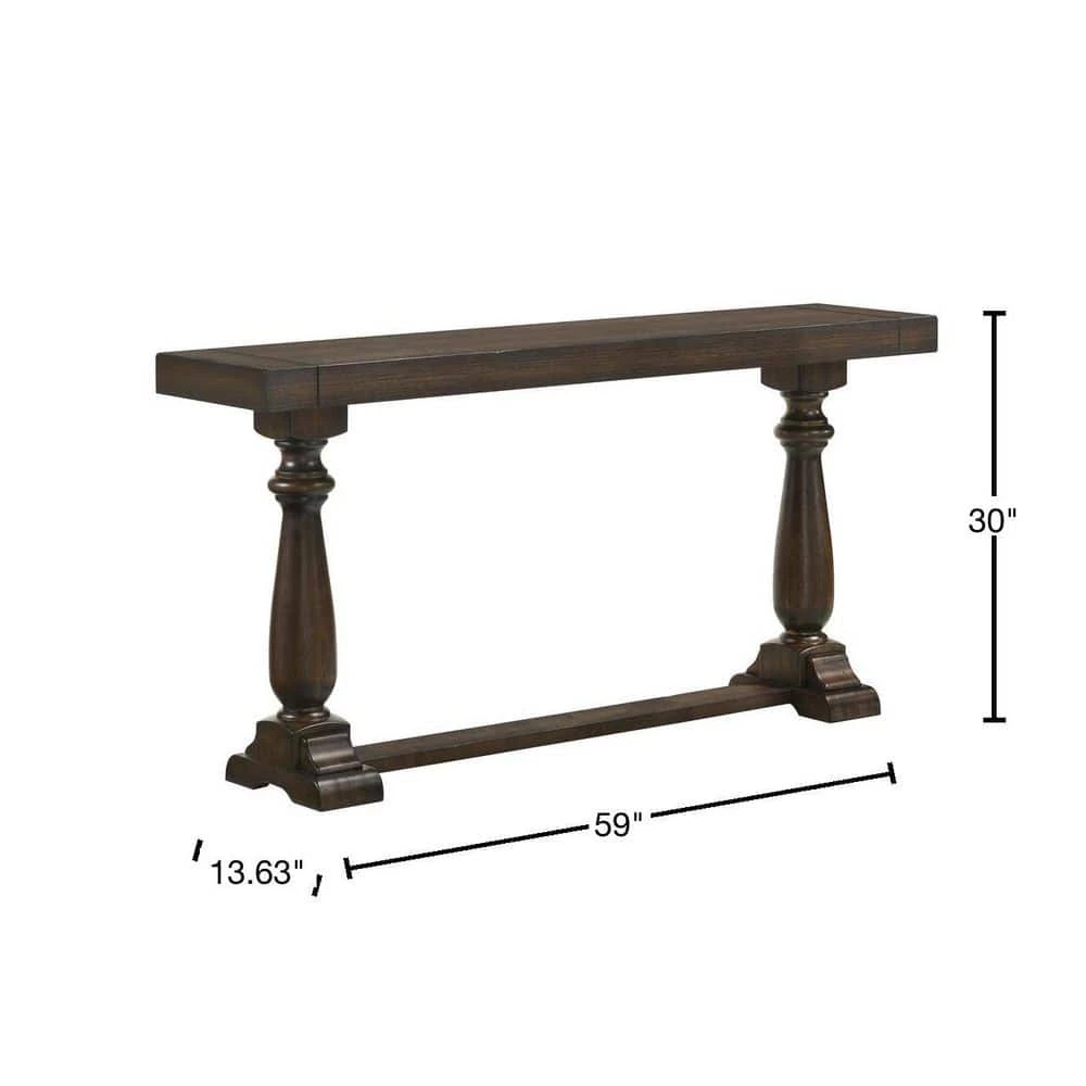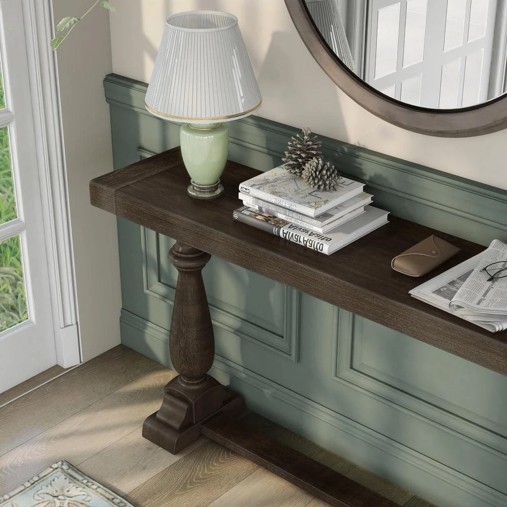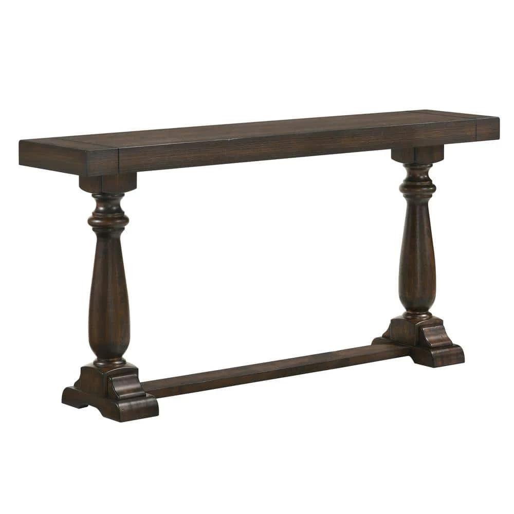 Create your modern farmhouse-style dream home with this sofa table. The trestle base invites that traditional country charm to your living room or entryway hall. Adorn the slim top with a table lamp, flowers, and books.