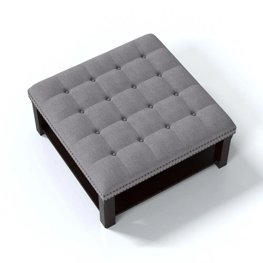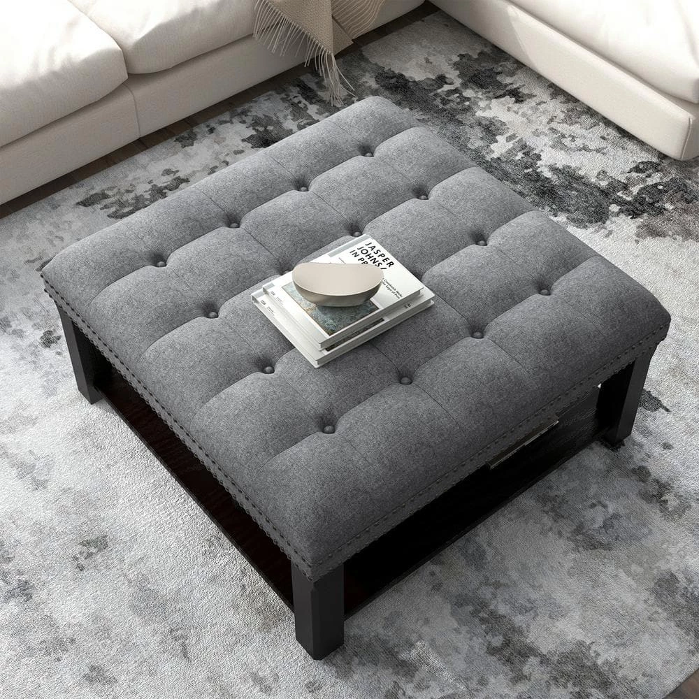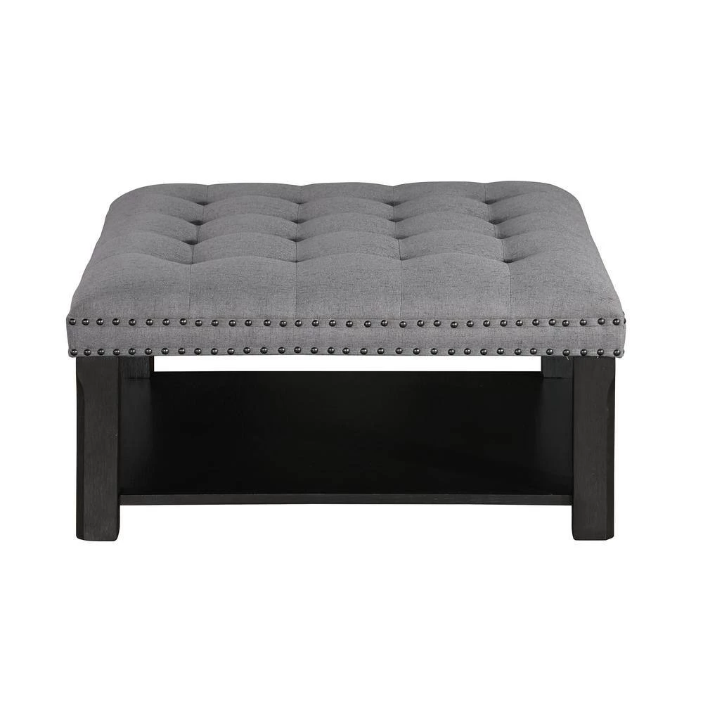 Featuring a traditional silhouette with a touch of modern living space. Crafted from rubberwood in a rich black wood finish and beautiful contrast gray linen upholstery lends a touch of understated style to this living room must have. Nailhead detailing around the lower edge adds another layer of contemporary flair. For comfort, the top is filled with high density foam for full comfortable relaxation. This eco friendly frame is constructed from rubberwood, a tropical, solid wood taken from rubber plantations.