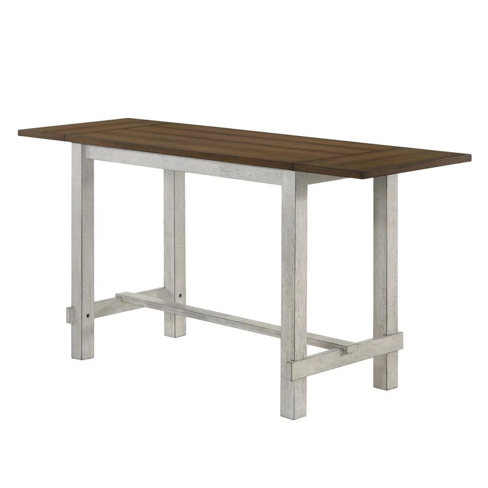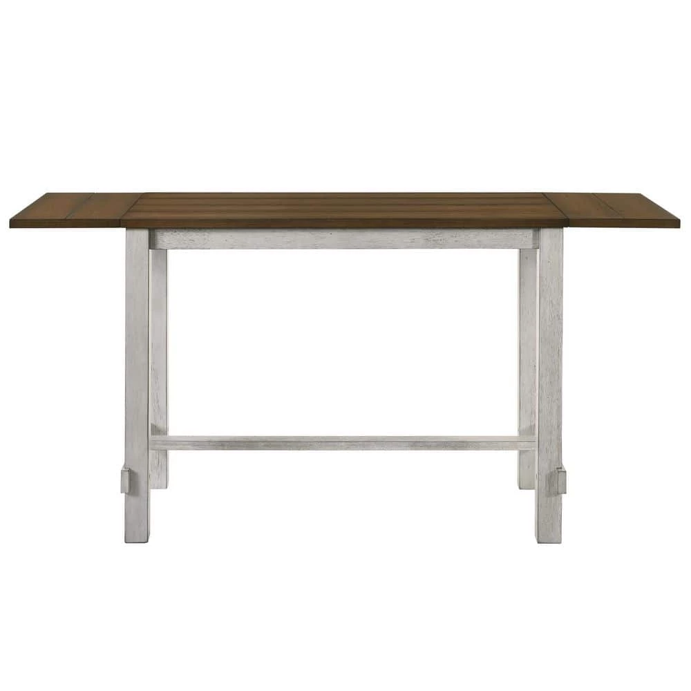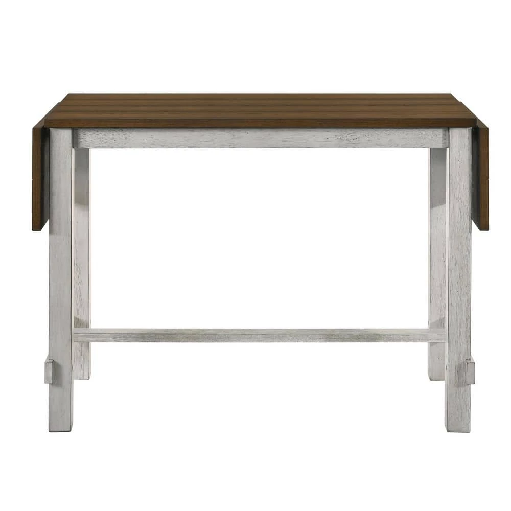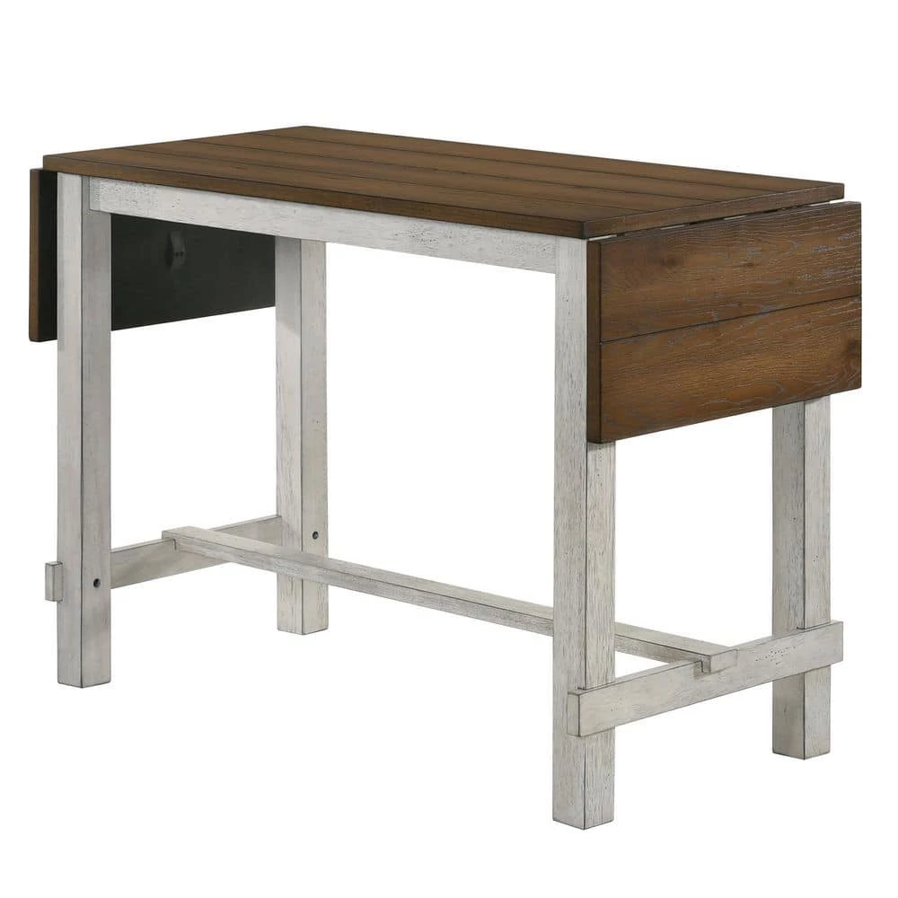Don’t sacrifice style for plain space-saving options. The antique light oak table top contrasts an antique white base that brings out a farmhouse charm. Dual side leaves extend the table top when you have extra guests or need added tabletop space. Pair with matching bar stools or upholstered counter height chairs to complete the look. This eco-friendly frame is constructed from rubberwood, a tropical, solid wood taken from rubber plantations.