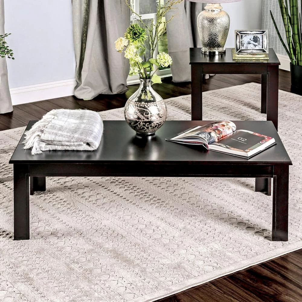 An impressive display of simplicity, the 3-piece Accent Table Set showcases a minimalist structure that allows the black finish to stand out. Wood and veneers offer sturdy, modern construction elements. A rectangular coffee table joins 2-end tables to complement and finish an enticing modern seating ensemble in a family room or entertaining space. The set of 3 ensures all your home decor pairs well together while overhang tops are supported upon sturdy wood legs.